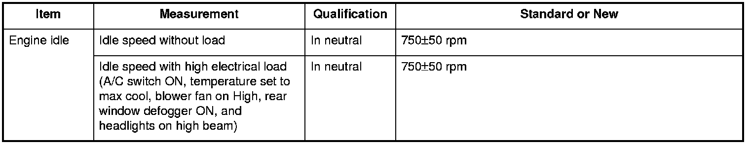 Engine idle Specifications