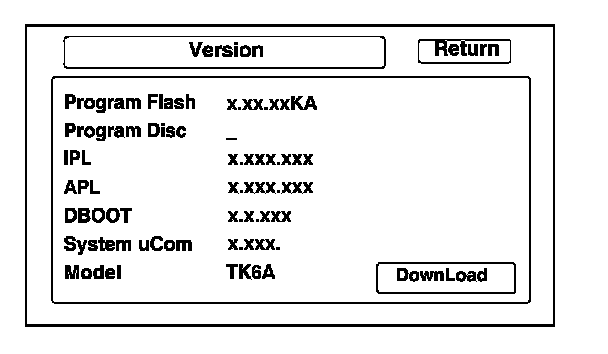 NOTE: The last two letters of the Program Flash or DVD fields indicate which DVD is installed in the unit. The letters KA imply that a United States DVD is installed. If the letters are KC, then a Canada DVD is installed. (See coverage discussion below.)