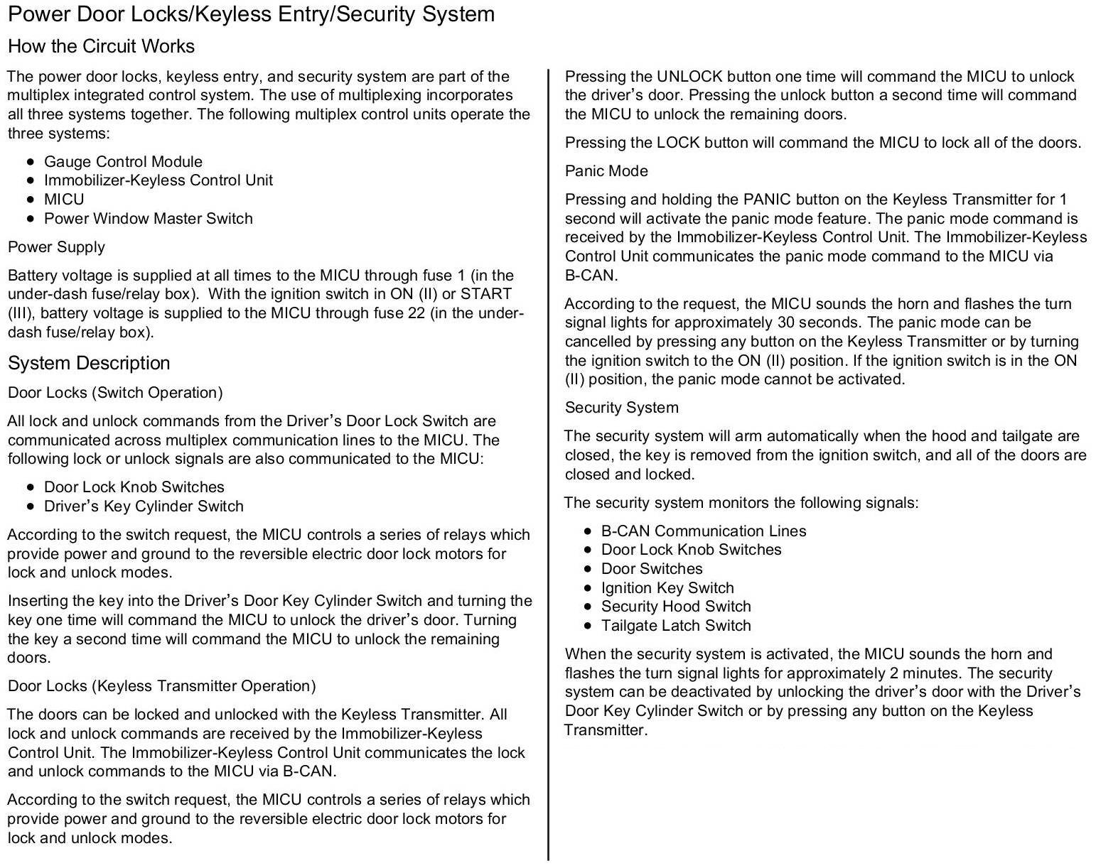How The Power Door Locks/Keyless Entry/Security System Circuit Works