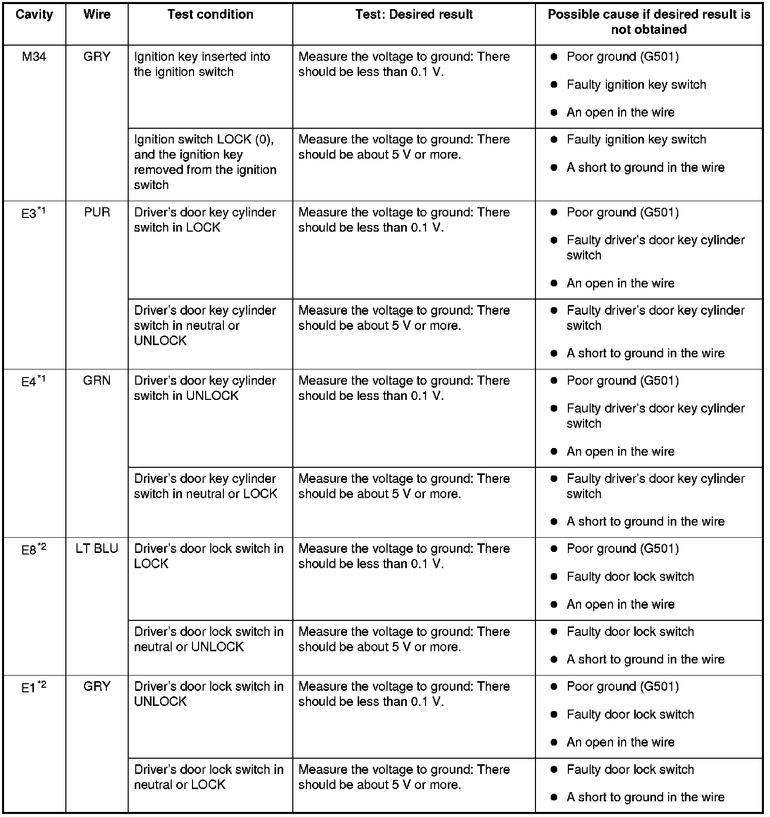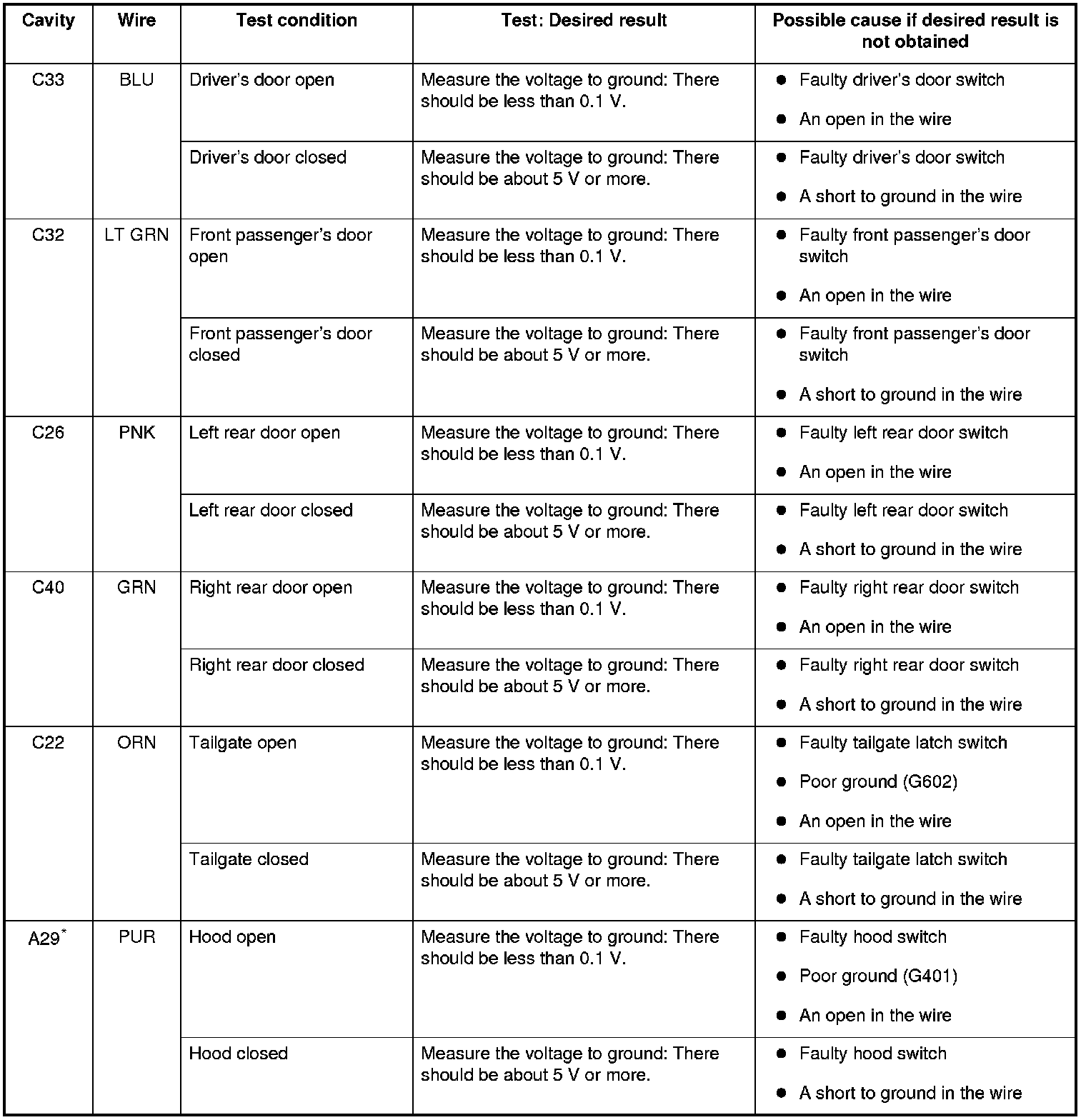 6. Reconnect the connectors to the under-dash fuse/relay box, and do these input tests at the following connectors.