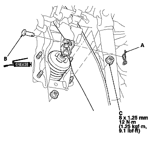 8. Remove the lock pin (A) and the clevis pin (B), then disconnect the yoke from the brake pedal.