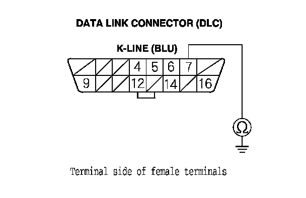 21. Check for continuity between DLC terminal No. 7 and body ground.