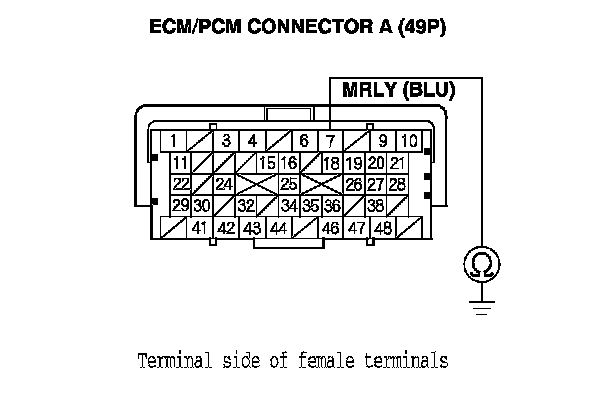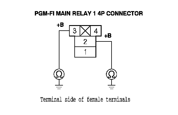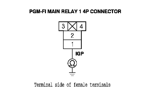 47. Check for continuity between PGM-FI main relay 1 4P connector terminal No. 1 and body ground.