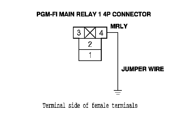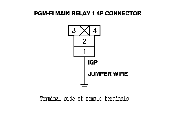 66. Connect PGM-FI main relay 1 4P connector terminal No. 4 to body ground with a jumper wire.