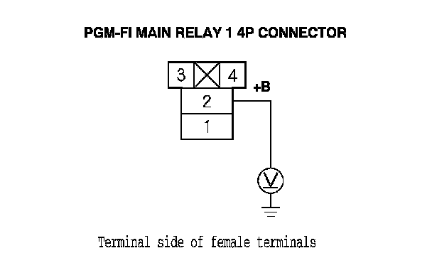 70. Measure the voltage between PGM-FI main relay 1 4P connector terminal No. 2 and body ground.