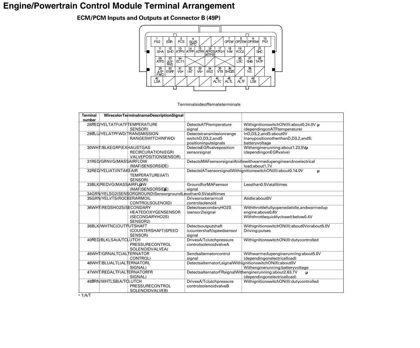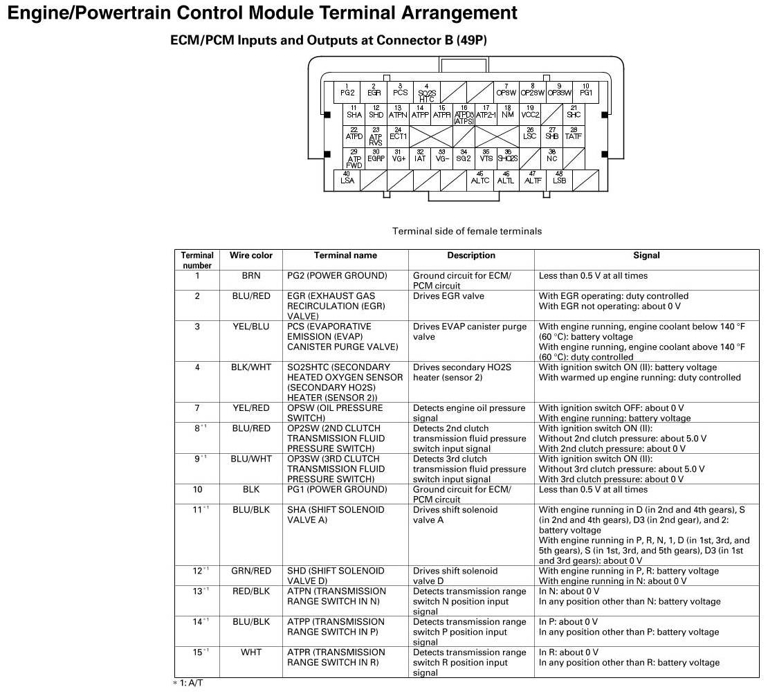 ECM/PCM Inputs And Outputs At Connector B