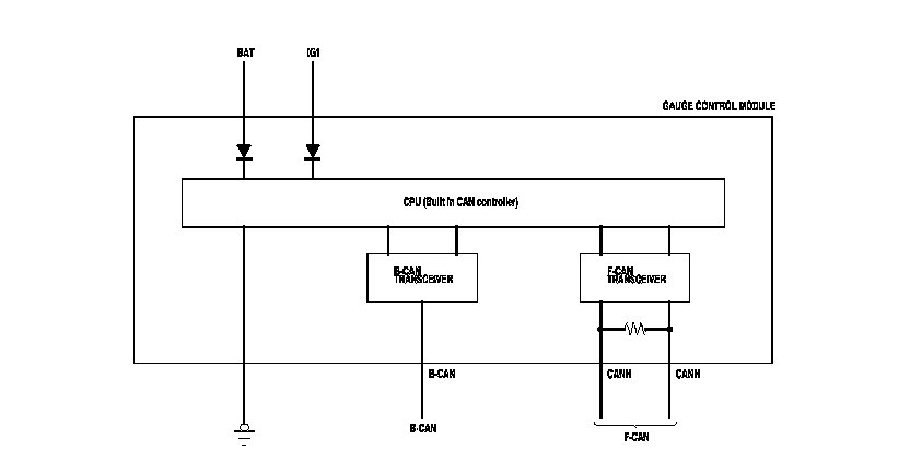 The gauge control module acts as a gateway to allow both systems to share information. The gauge control module translates information from B-CAN to F-CAN and from F-CAN to B-CAN.