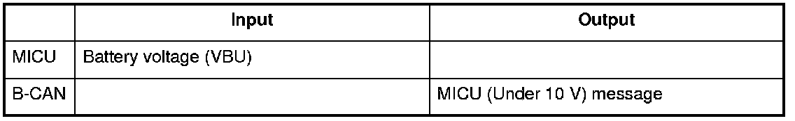 The MICU monitors the power supply voltage (back-up voltage). If the voltage goes below 10 V, the MICU sends a MICU message and will not store DTCs.