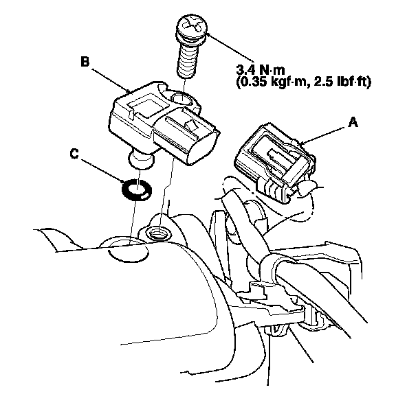 Install the parts in the reverse order of removal with a new O-ring (C).