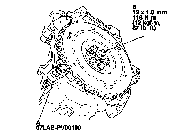 mounting bolts (B) in a crisscross pattern in several steps.
