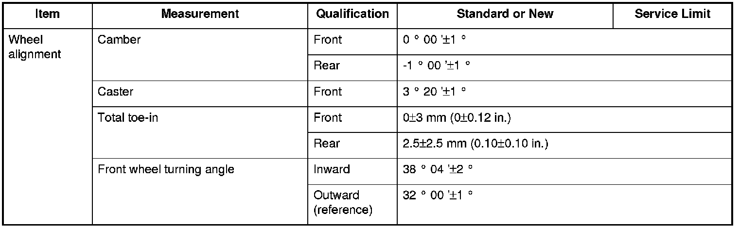 Wheel alignment Specifications