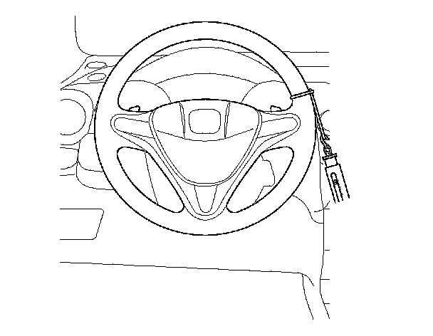 2. Attach a commercially available spring scale to the steering wheel. With the engine idling and the vehicle on a clean, dry floor, pull the scale as shown, and read it as soon as the tires begin to turn.