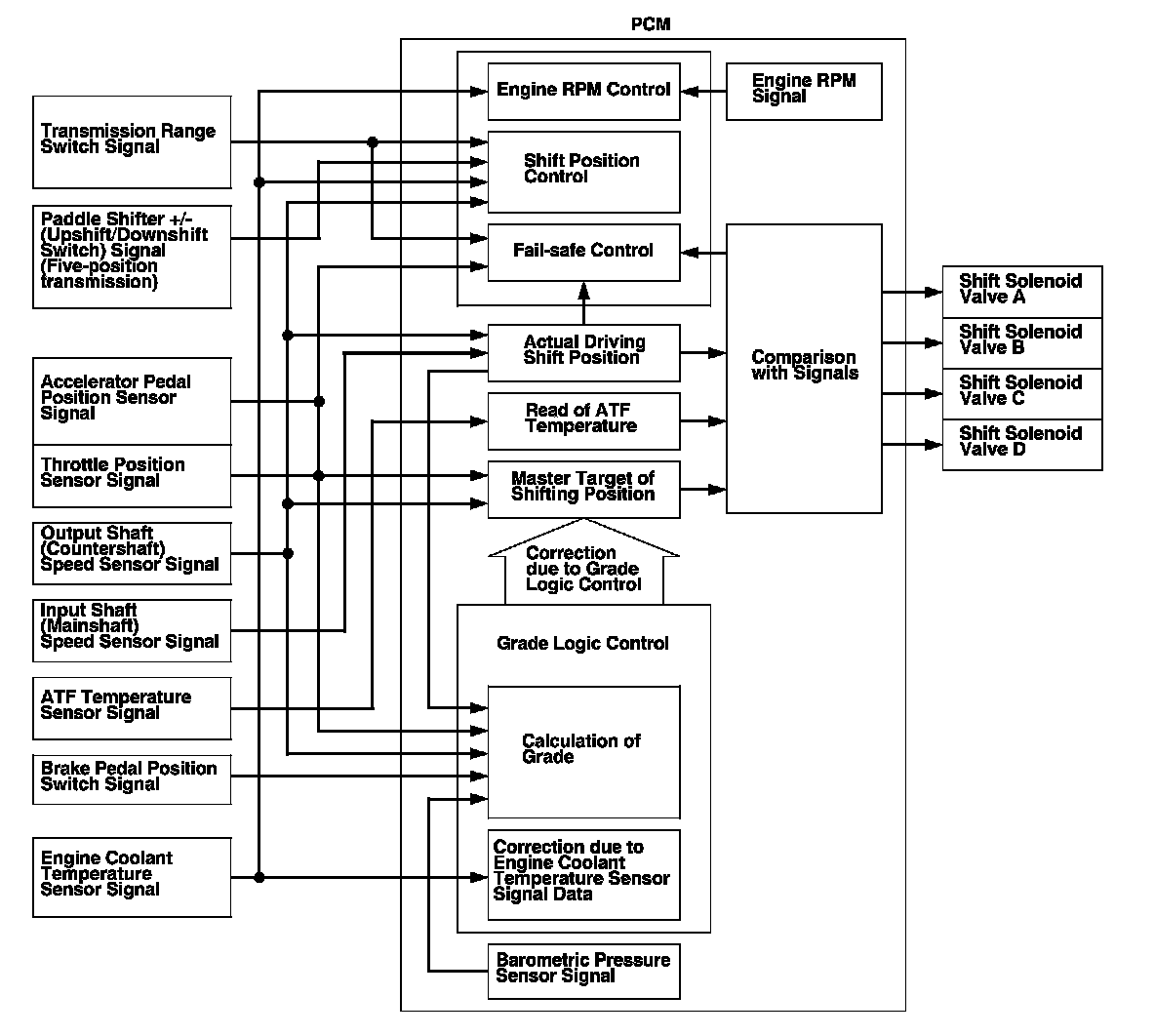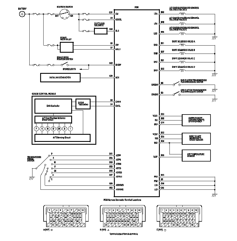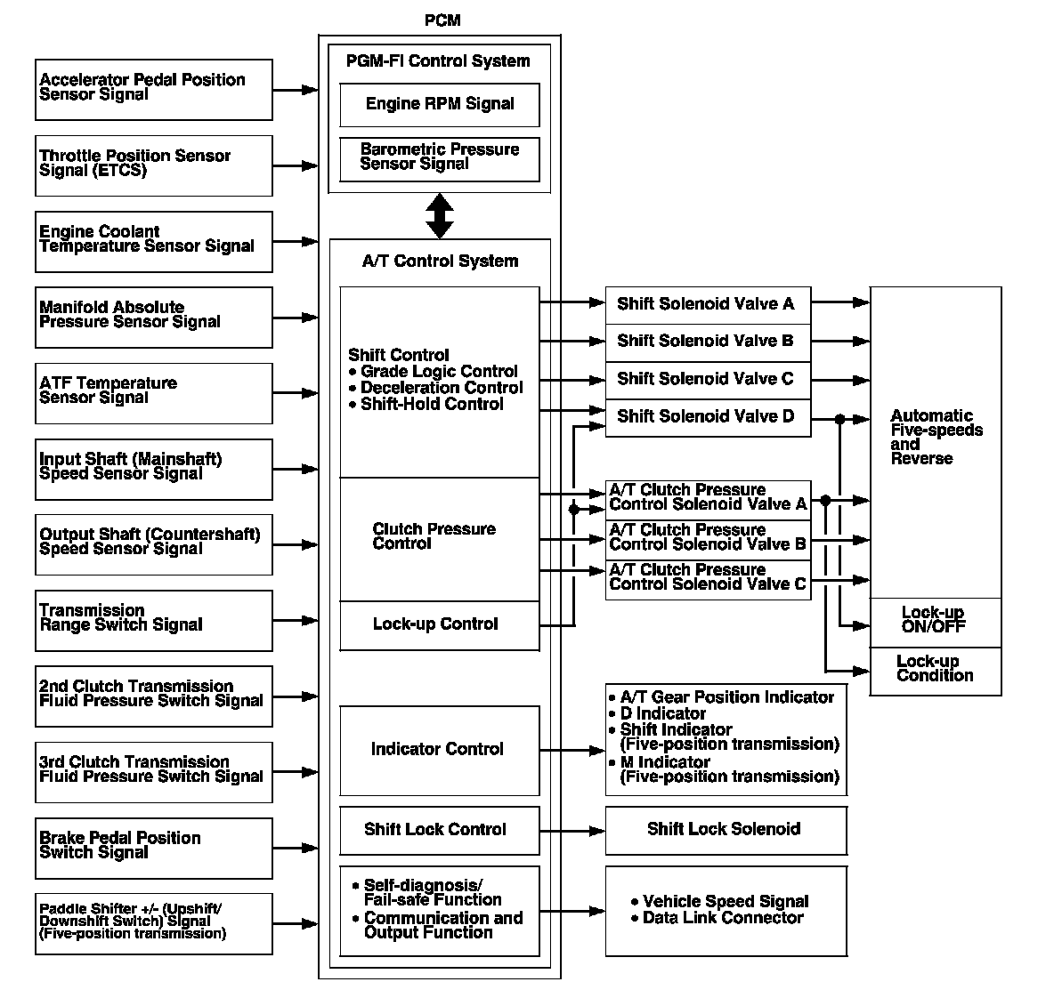 PCM A/T Control System Inputs and Outputs