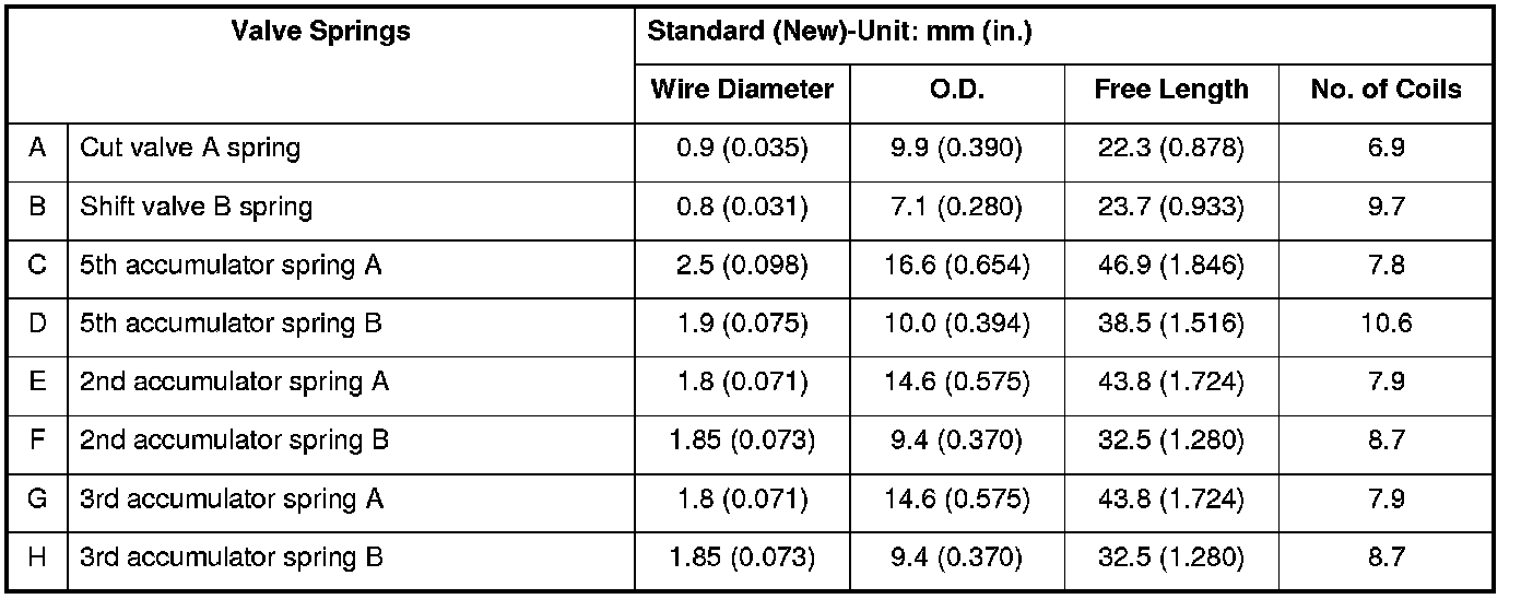 VALVE SPRINGS SPECIFICATIONS