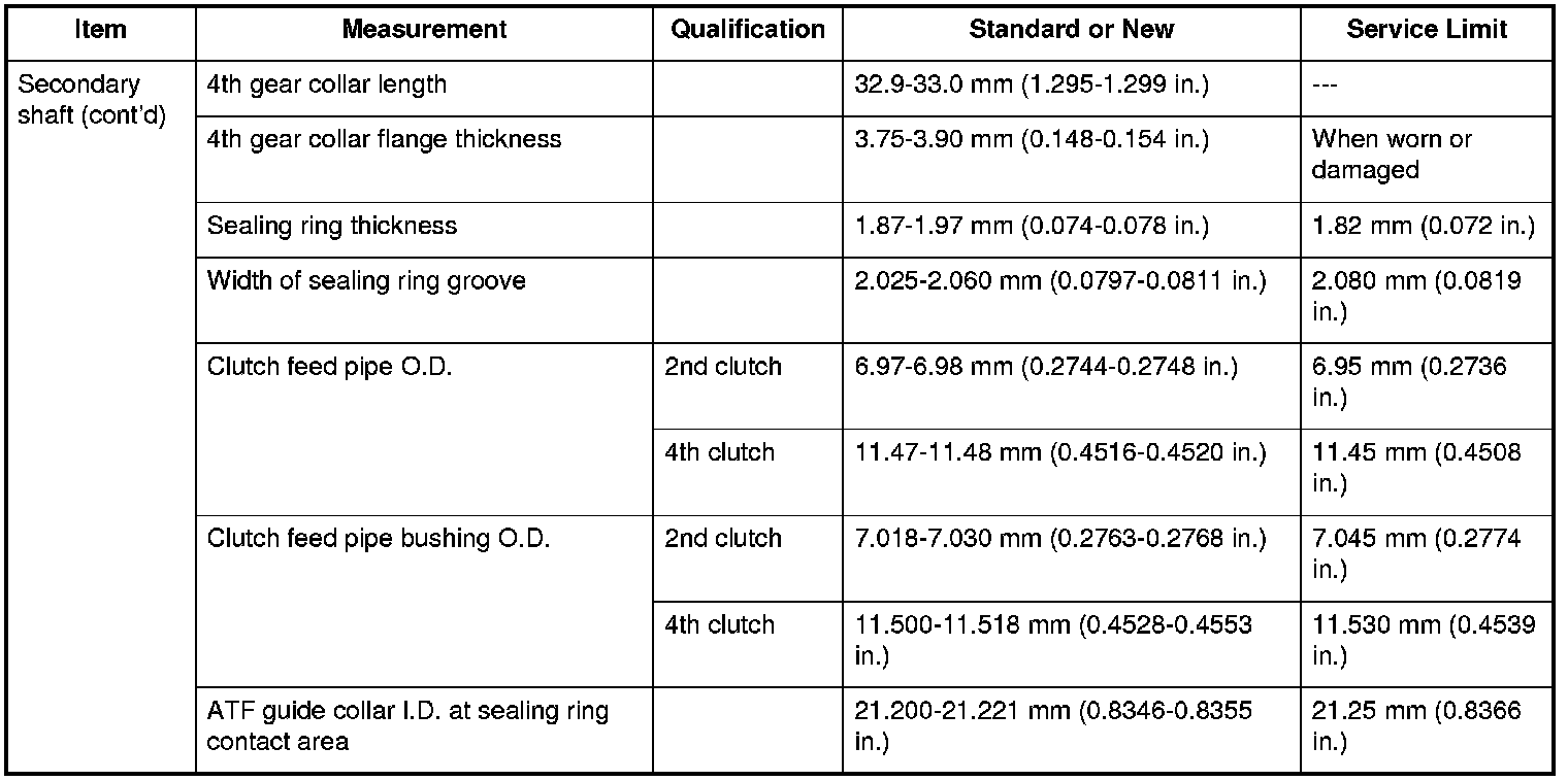 Secondary Shaft (Contd) Specifications (A/T)