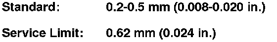 3. Measure the clearance between the shift forks (A) and the shift arm (B). If the clearance exceeds the service limit, go to step 4.