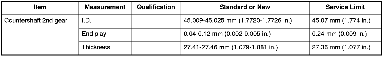 Countershaft 2nd Gear Specifications (M/T)