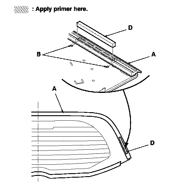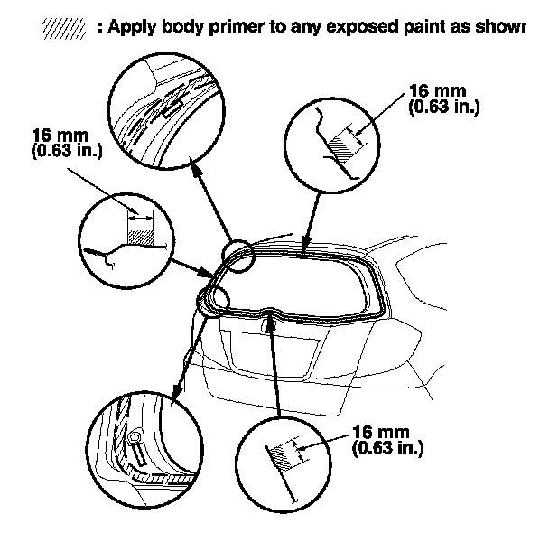 - Never touch the primed surfaces with your hands. If you do, the adhesive may not bond to the rear window properly, causing a leak after the rear window is installed.