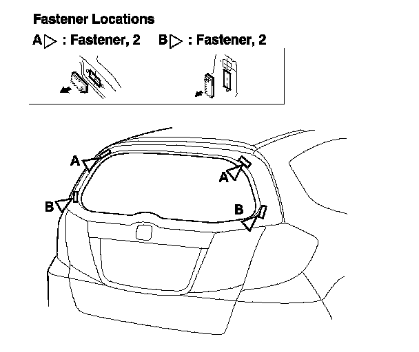 2. Remove rubber dams A and B from the edge of the rear window. If necessary, cut the rubber dam with a utility knife.