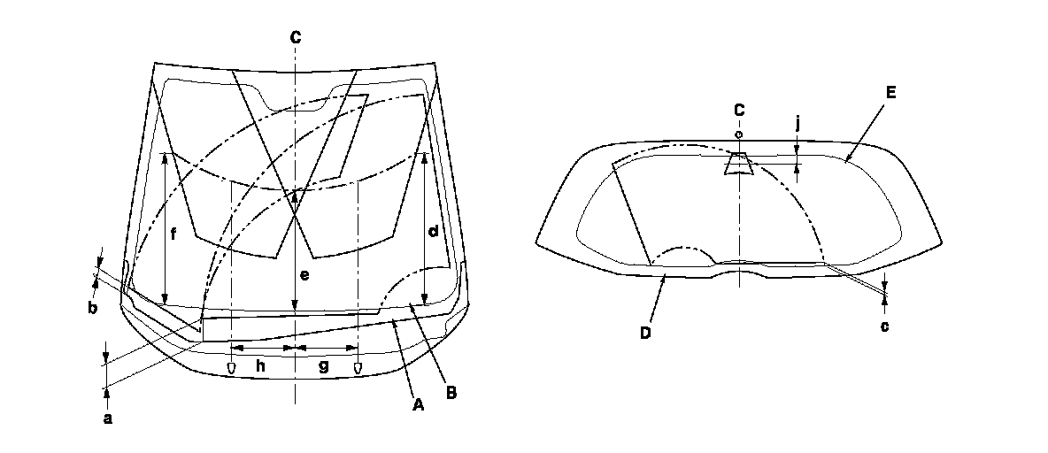 2. When you turn on the washers, make sure 50 % or more of the washer fluid lands within the spray area. If the spray area is not within the standard positions, adjust the nozzles.
