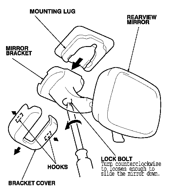 1. Remove the rearview mirror as shown.