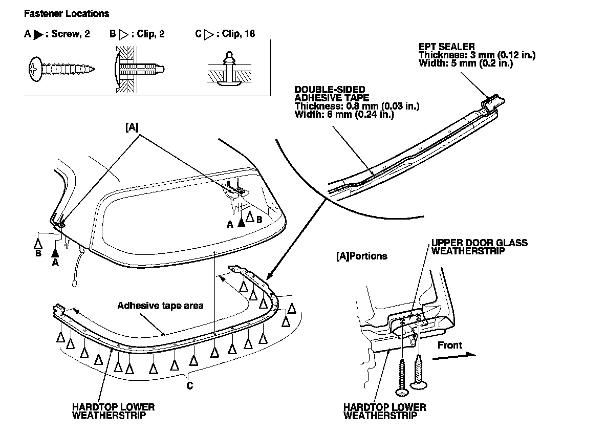 - Remove the hardtop from the body before removing or installing the lower weatherstrip.
