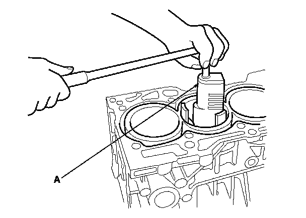 3. If you can feel a ridge of metal or hard carbon around the top of any cylinder, remove it with a ridge reamer (A). Follow the reamer manufacturer's instructions. If the ridge is not removed, it may damage the piston as it is pushed out.