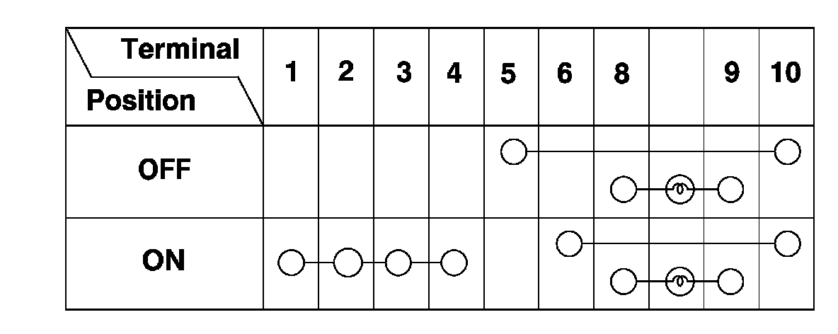 4. Check for continuity between the terminals in each switch position according to the table.