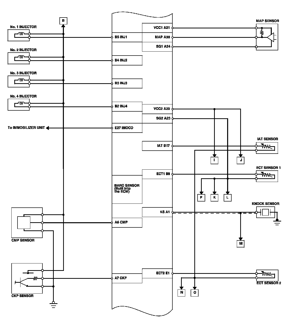 The BARO sensor is inside the ECM. It converts atmospheric pressure into a voltage signal that is used by the ECM to modify the basic duration of the fuel injection discharge.