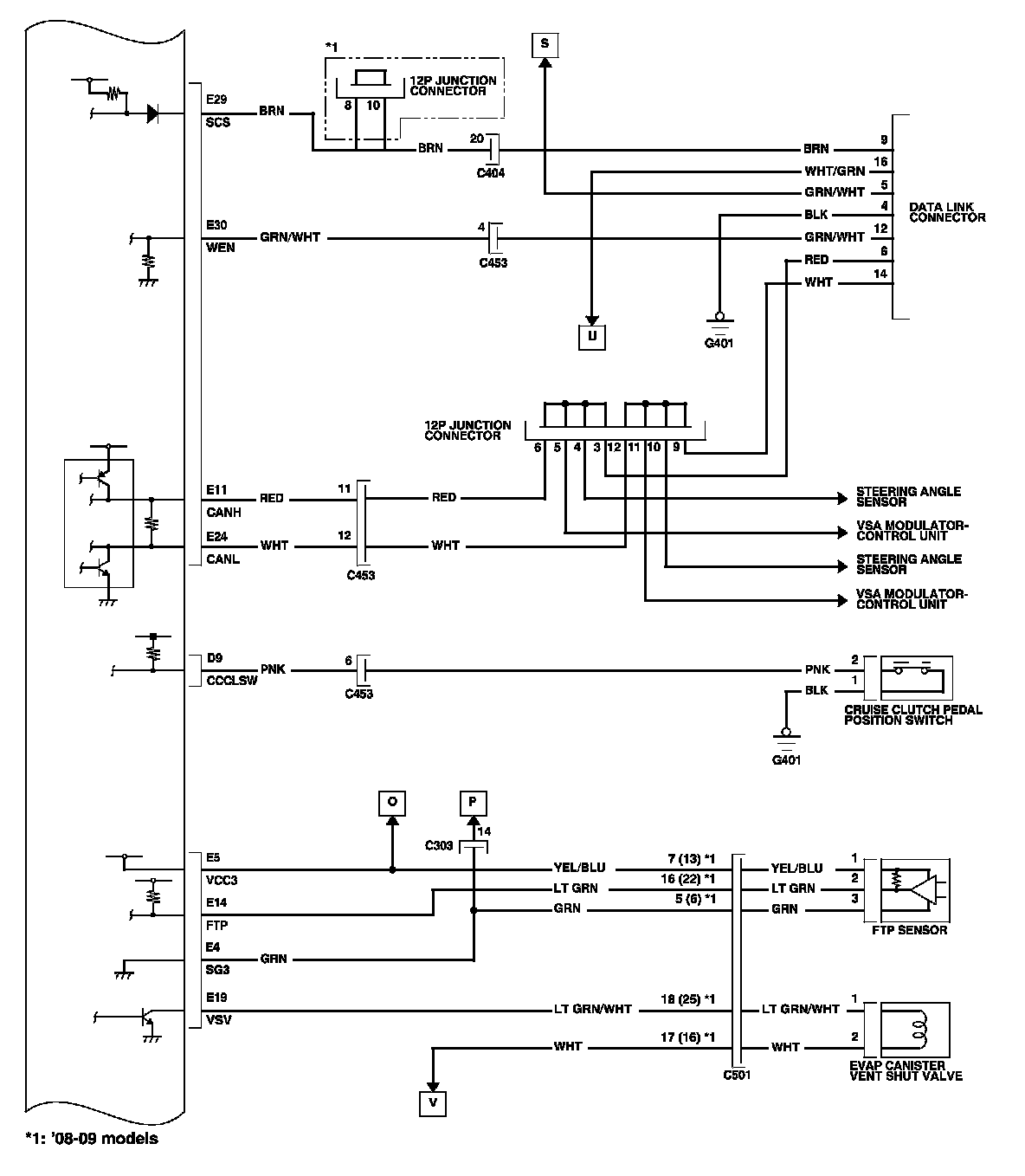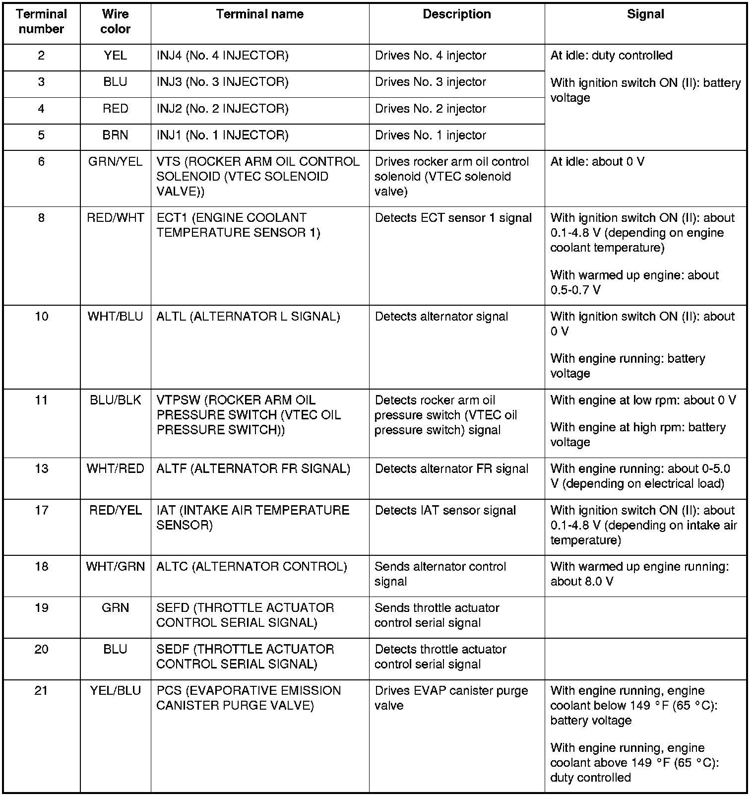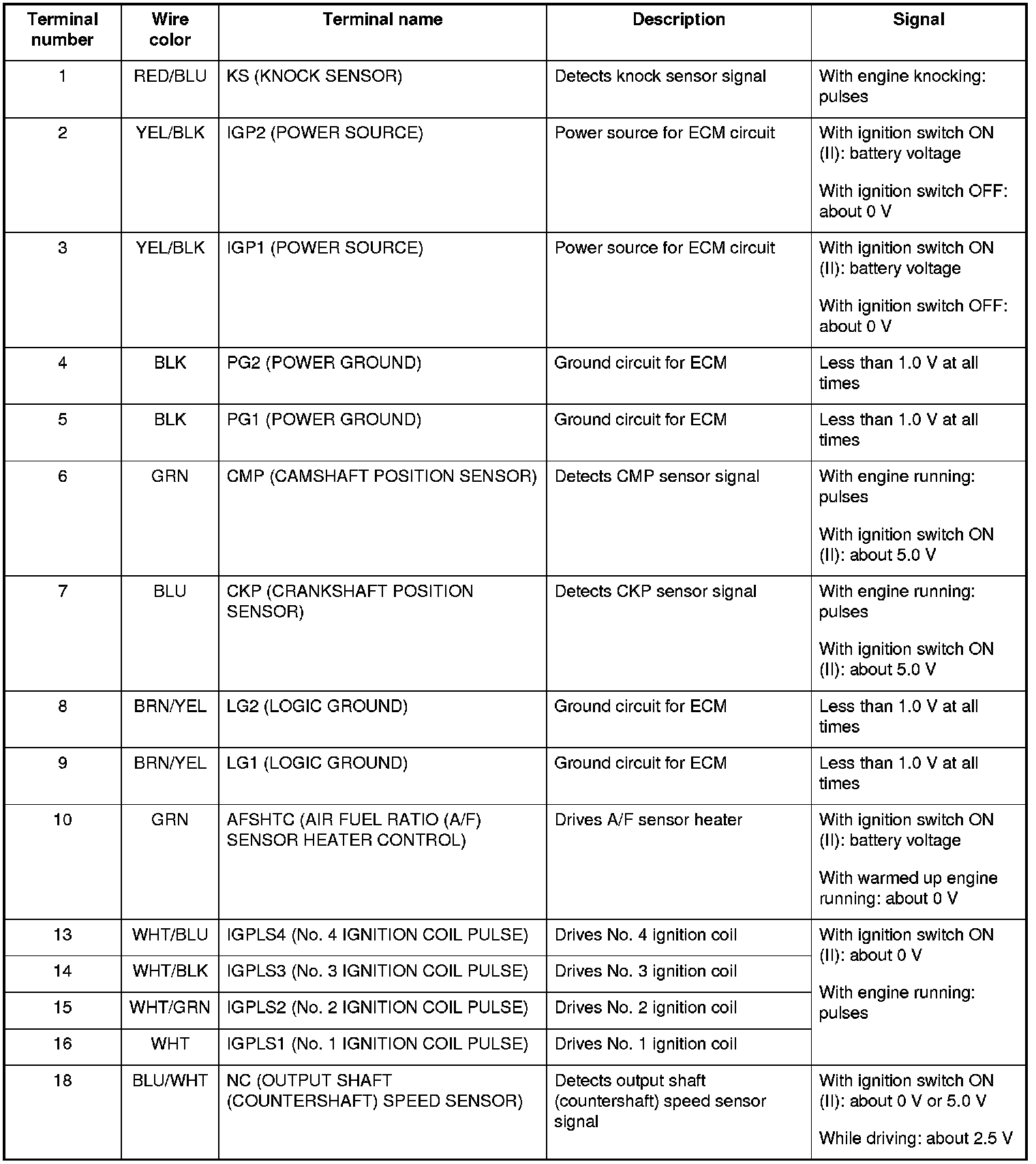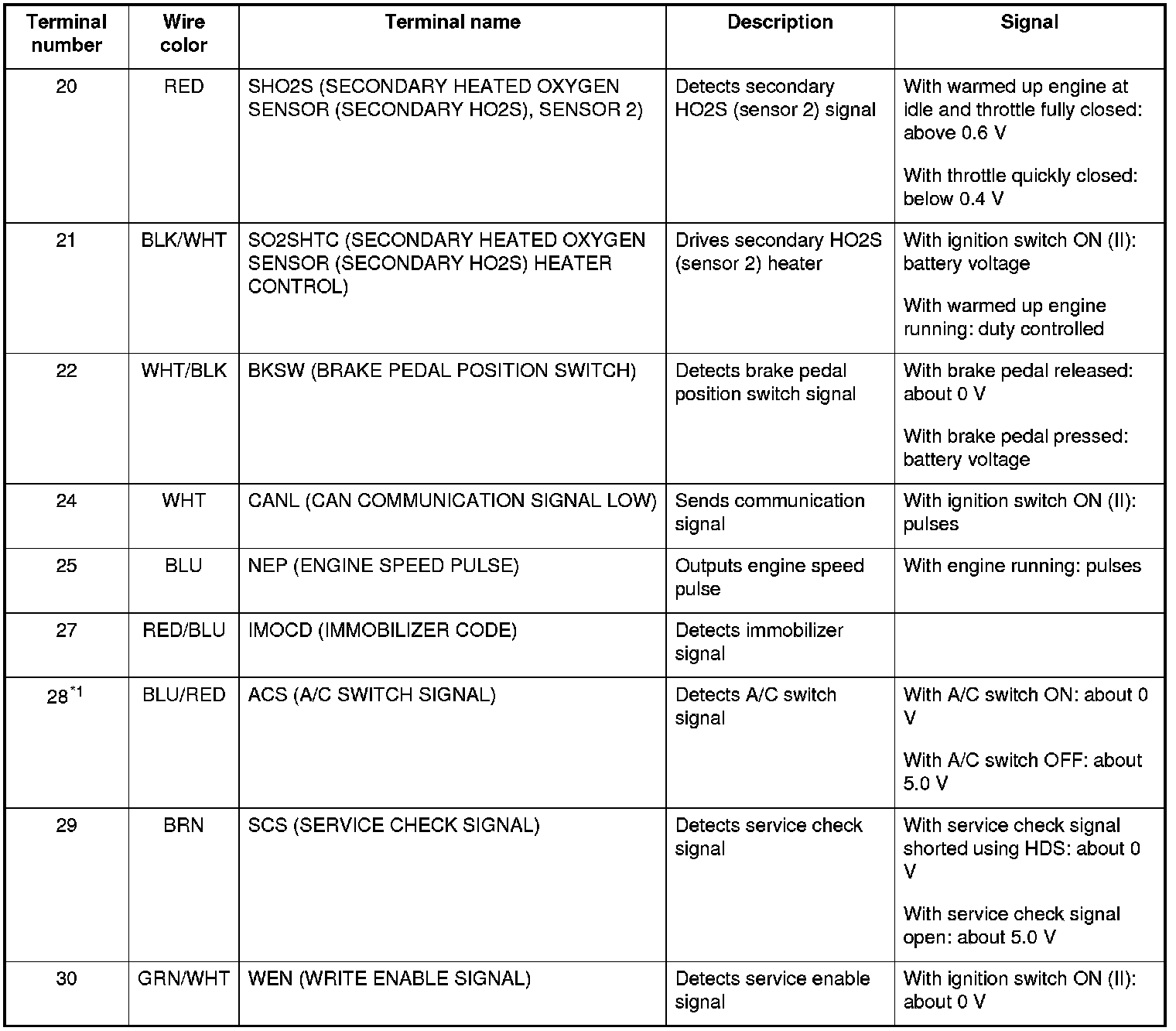 After the ignition switch is turned to LOCK (0), the ECM stays on (about 25 minutes). If an ECM connector is disconnected during this time, the ECM may be damaged. To cancel this mode, disconnect the negative cable from the battery or jump the SCS line with the HDS after the ignition switch is turned to LOCK (0).
