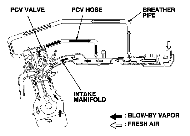 The PCV valve prevents blow-by gases from escaping into the atmosphere by venting them into the intake manifold.