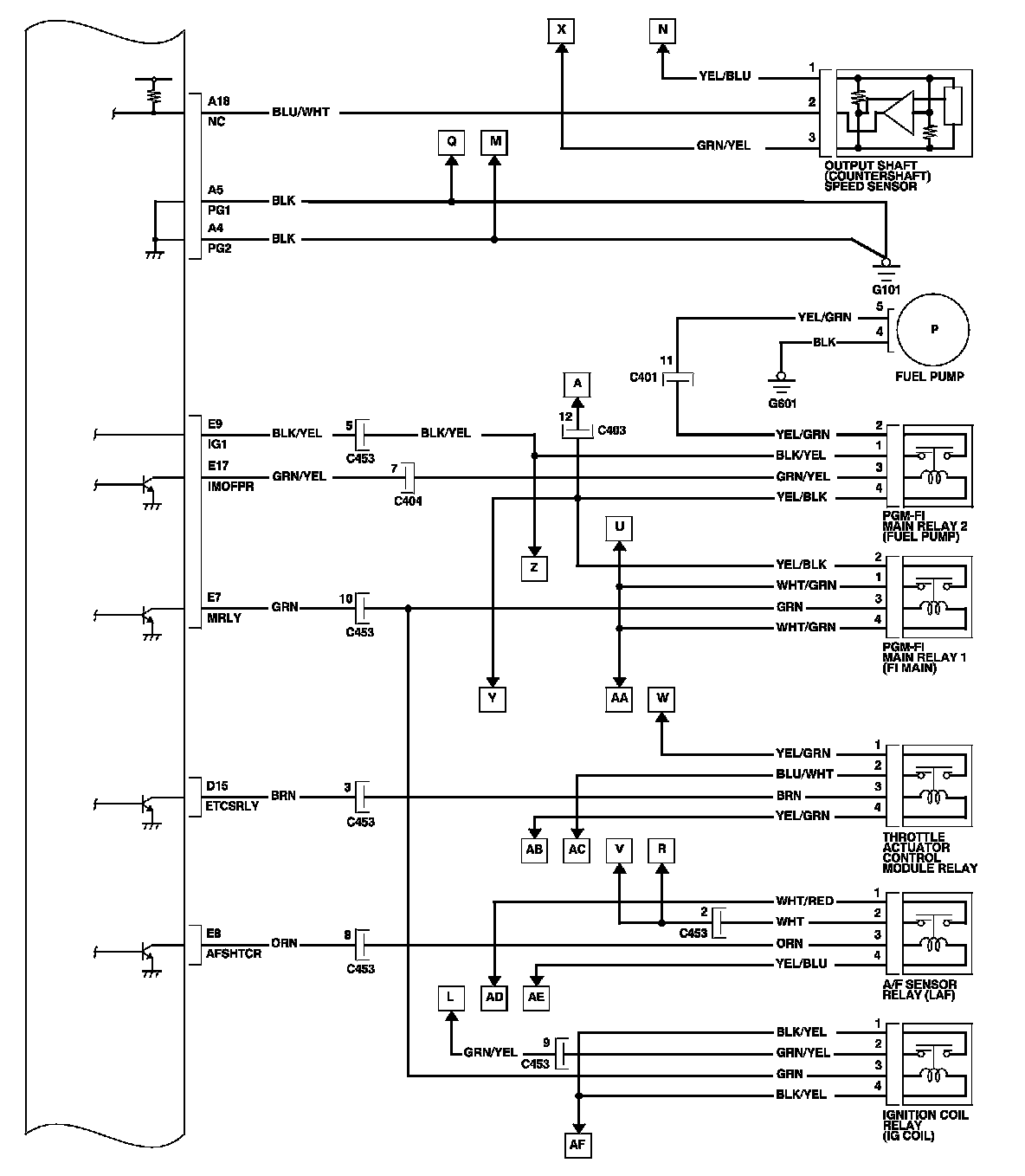 PGM-FI Main Relay 1 (FI MAIN) and 2 (FUEL PUMP)