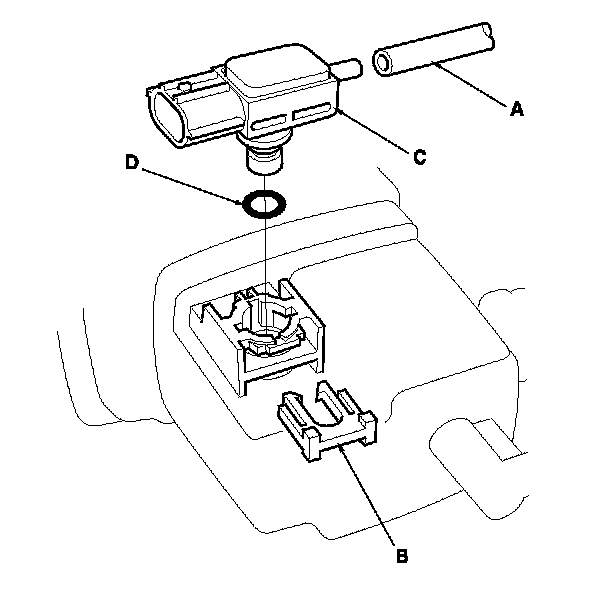5. Install the parts in the reverse order of removal with a new O-ring (D).