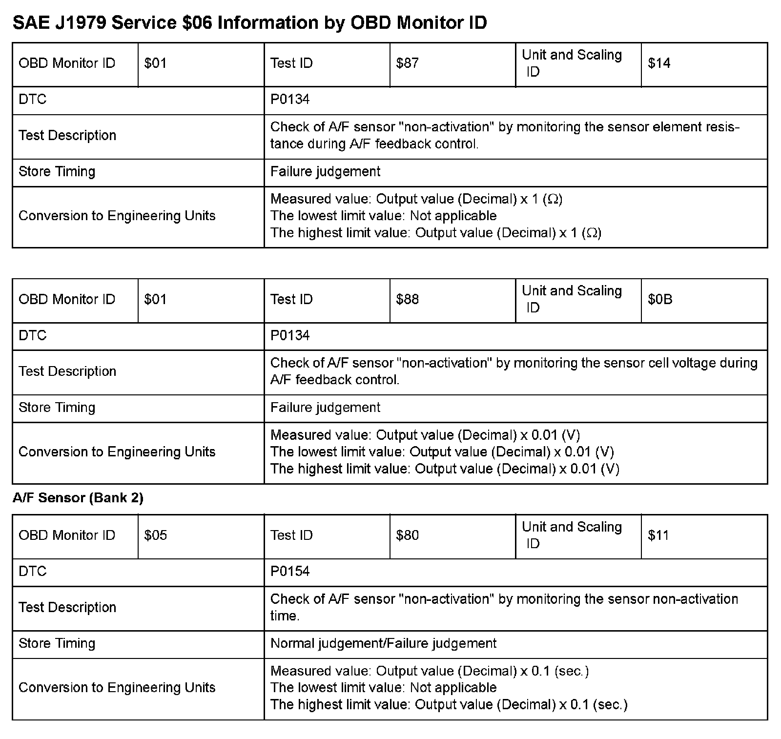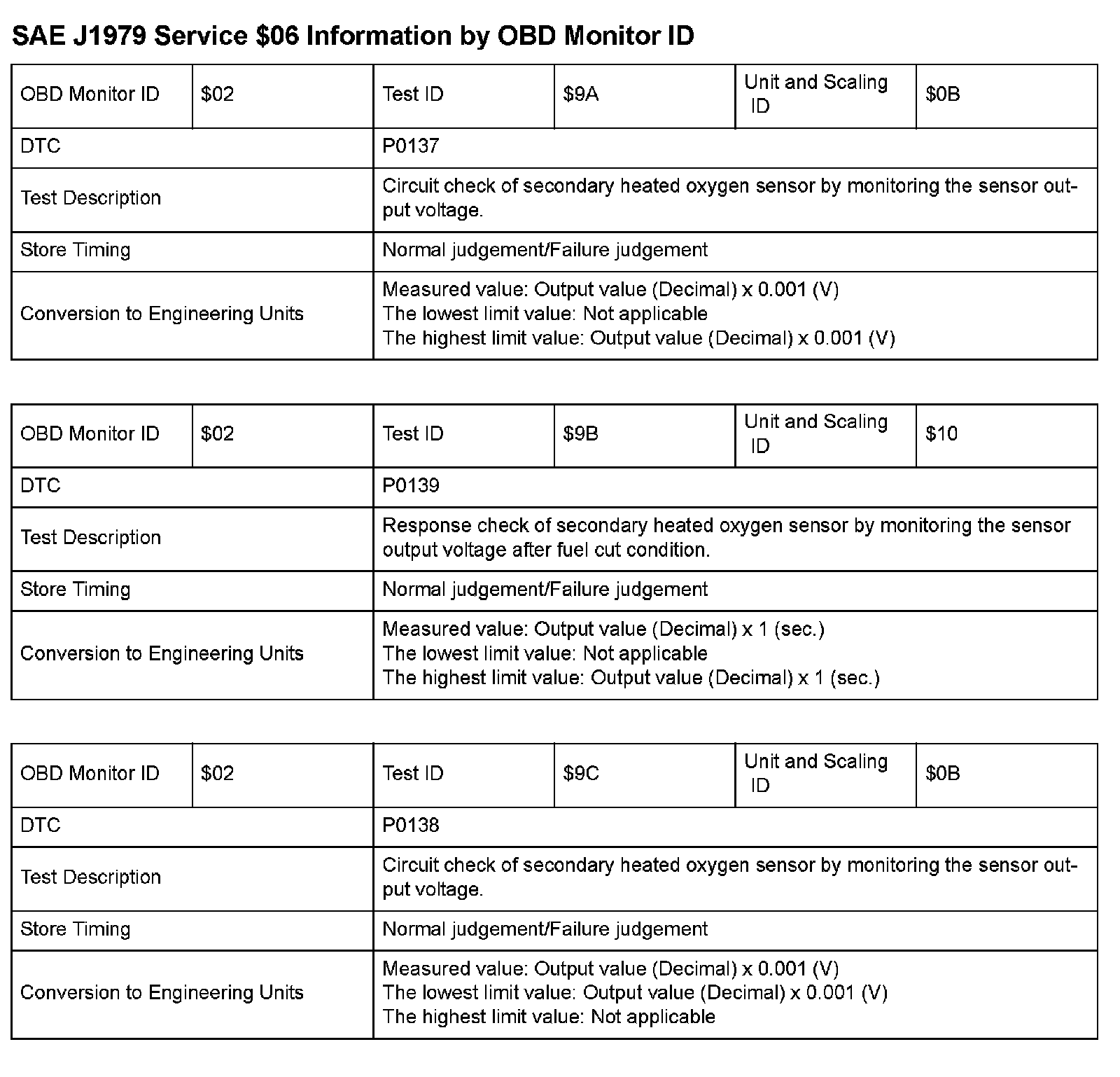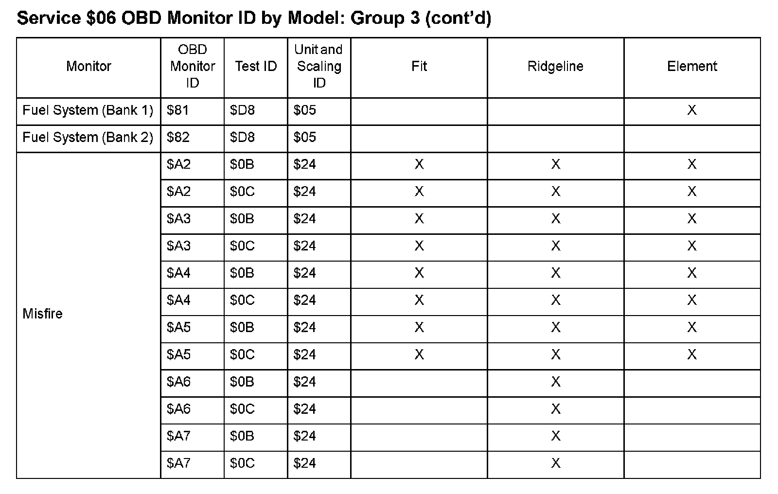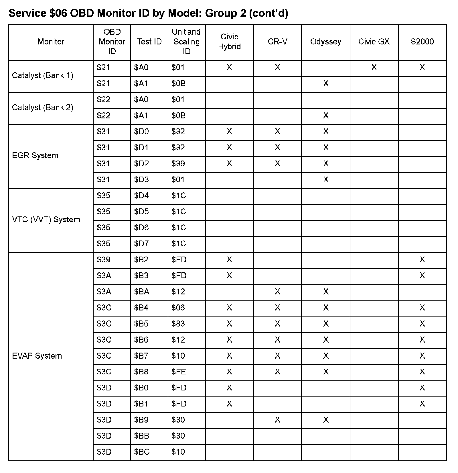 SAE J1979 Mode/Service $06 Test Information: All 2009 Hondas