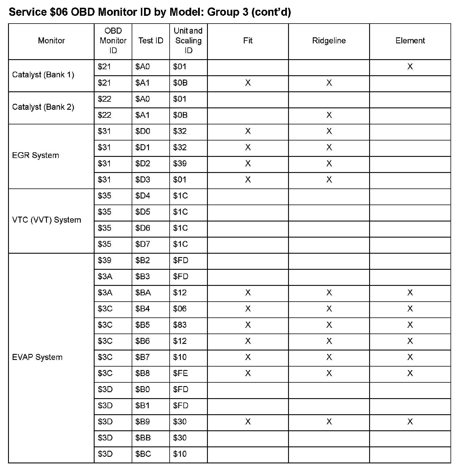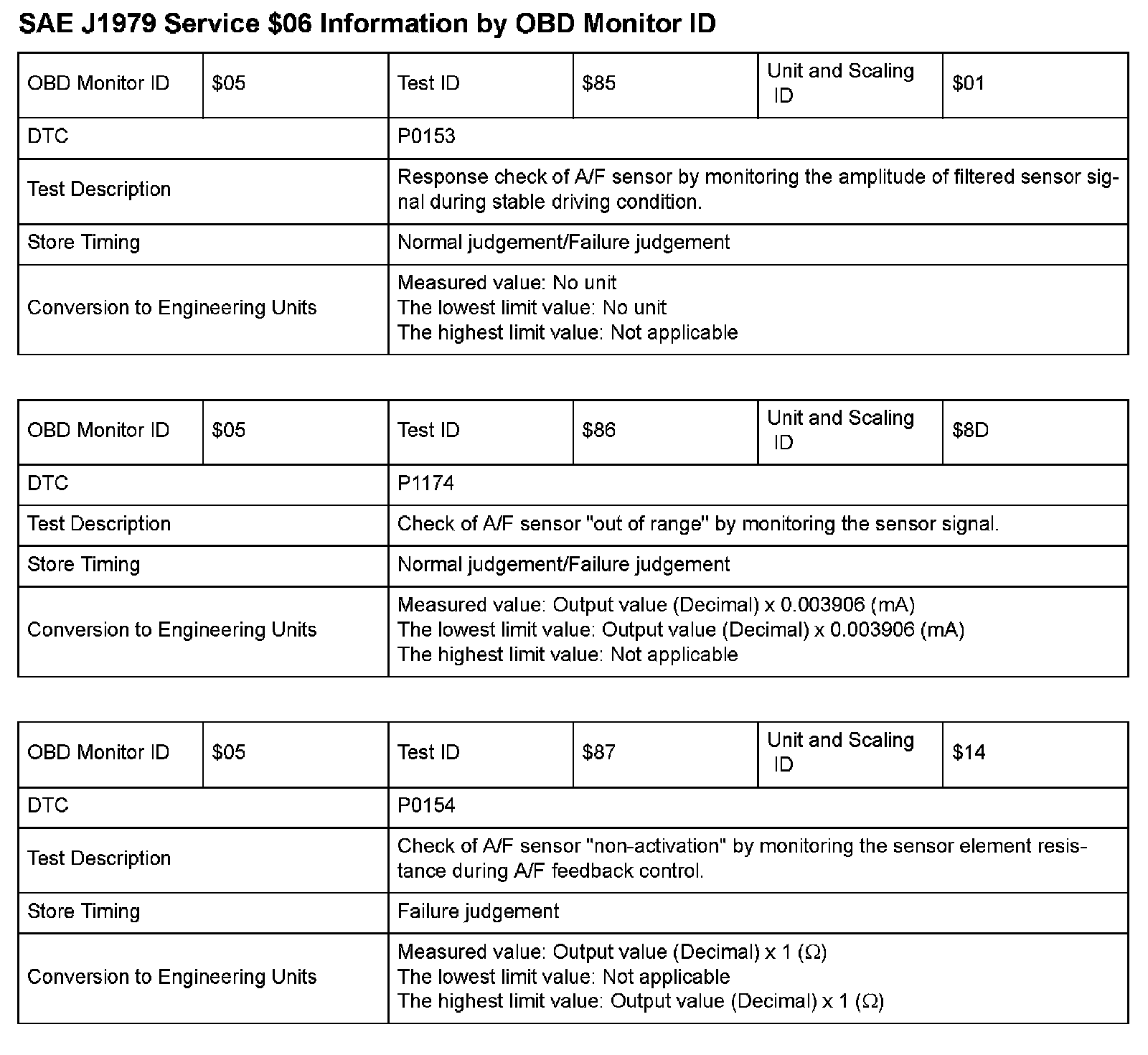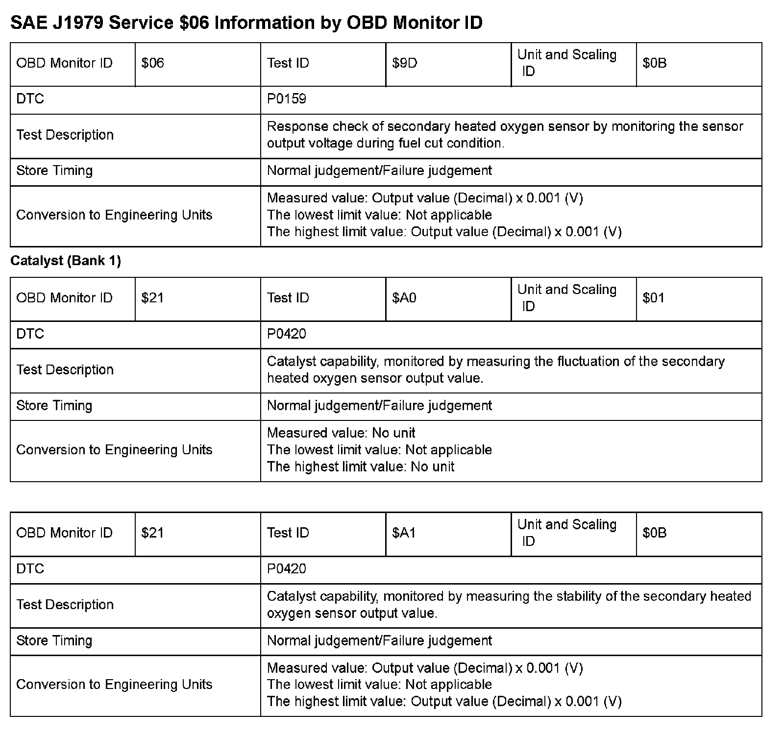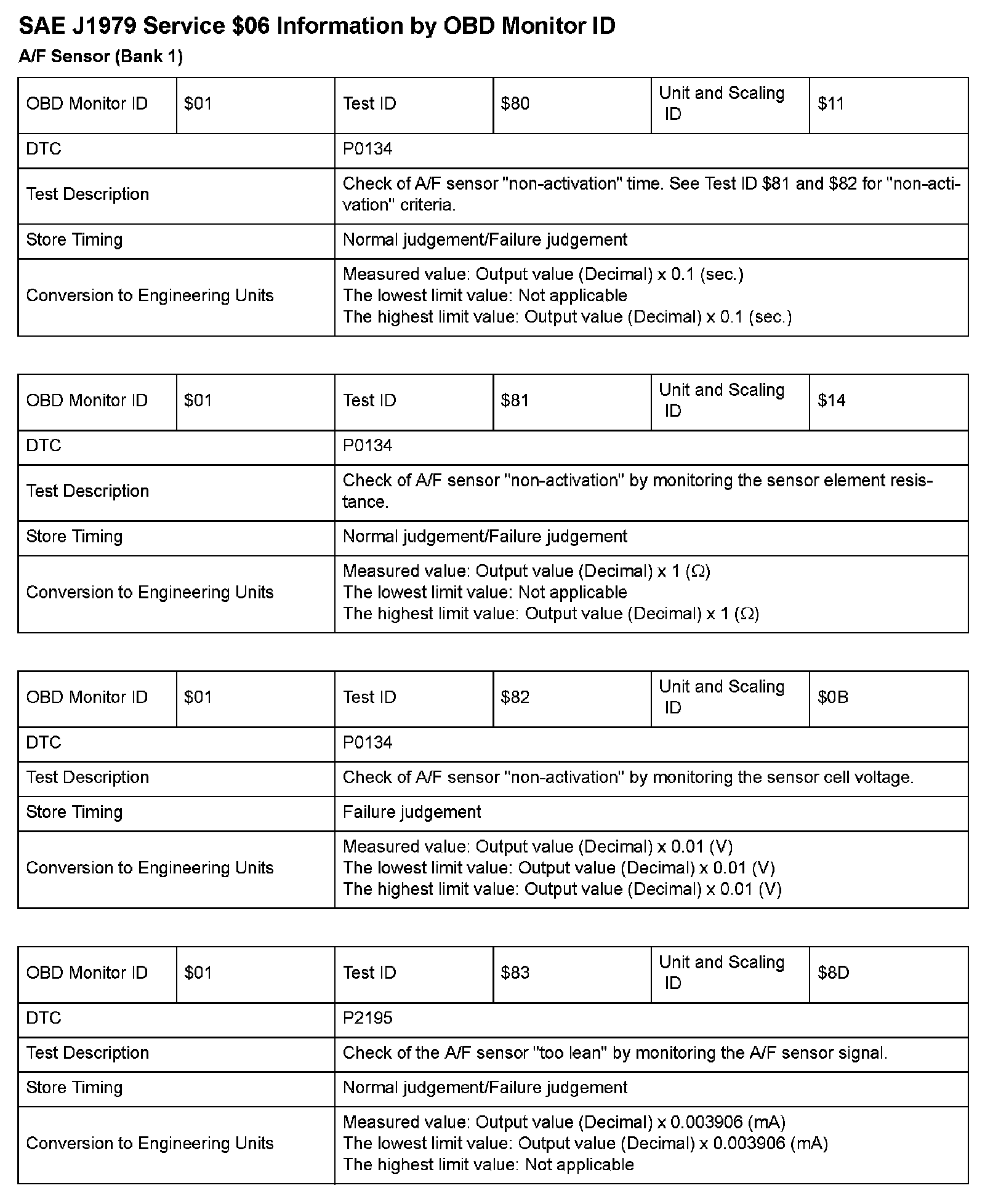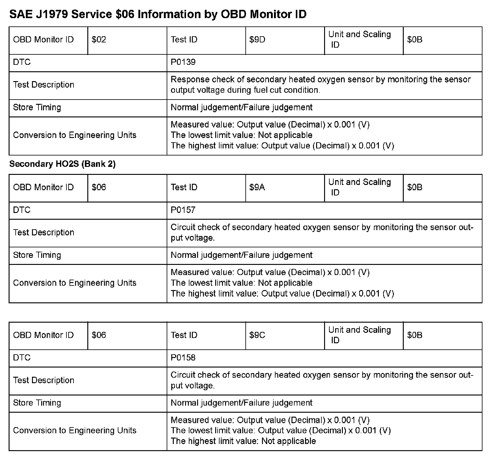 SAE J1979 Mode/Service $06 Test Information: All 2009 Hondas