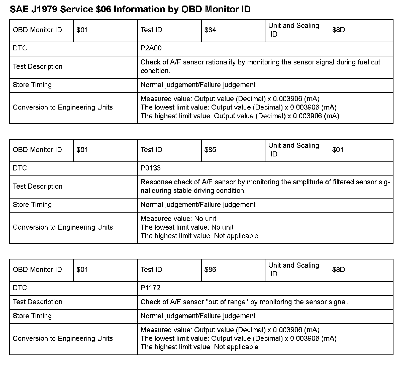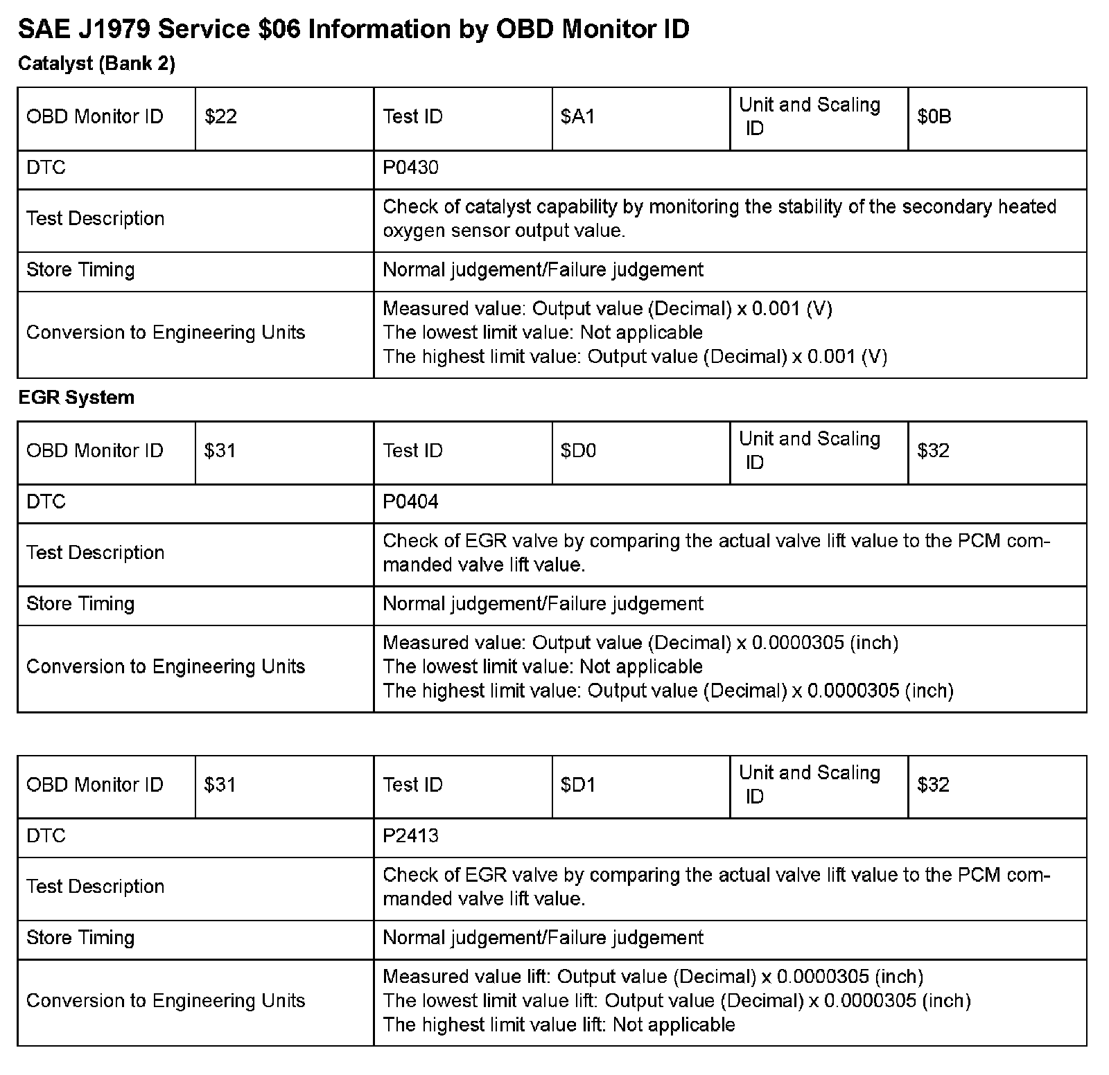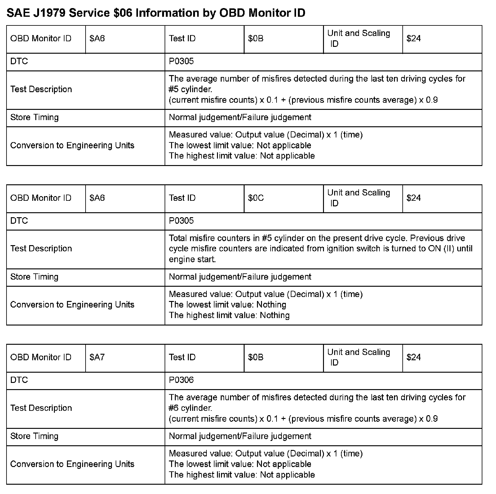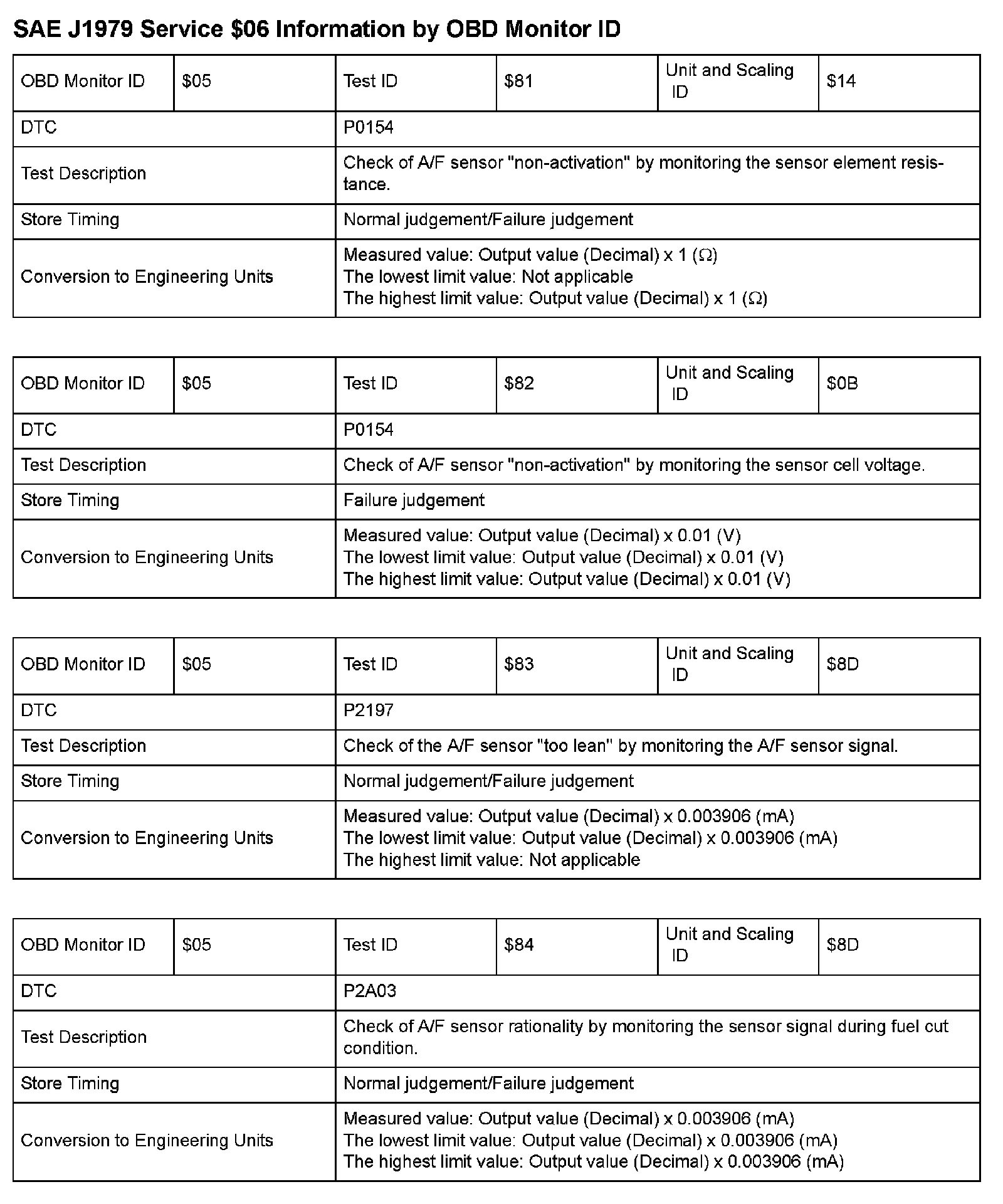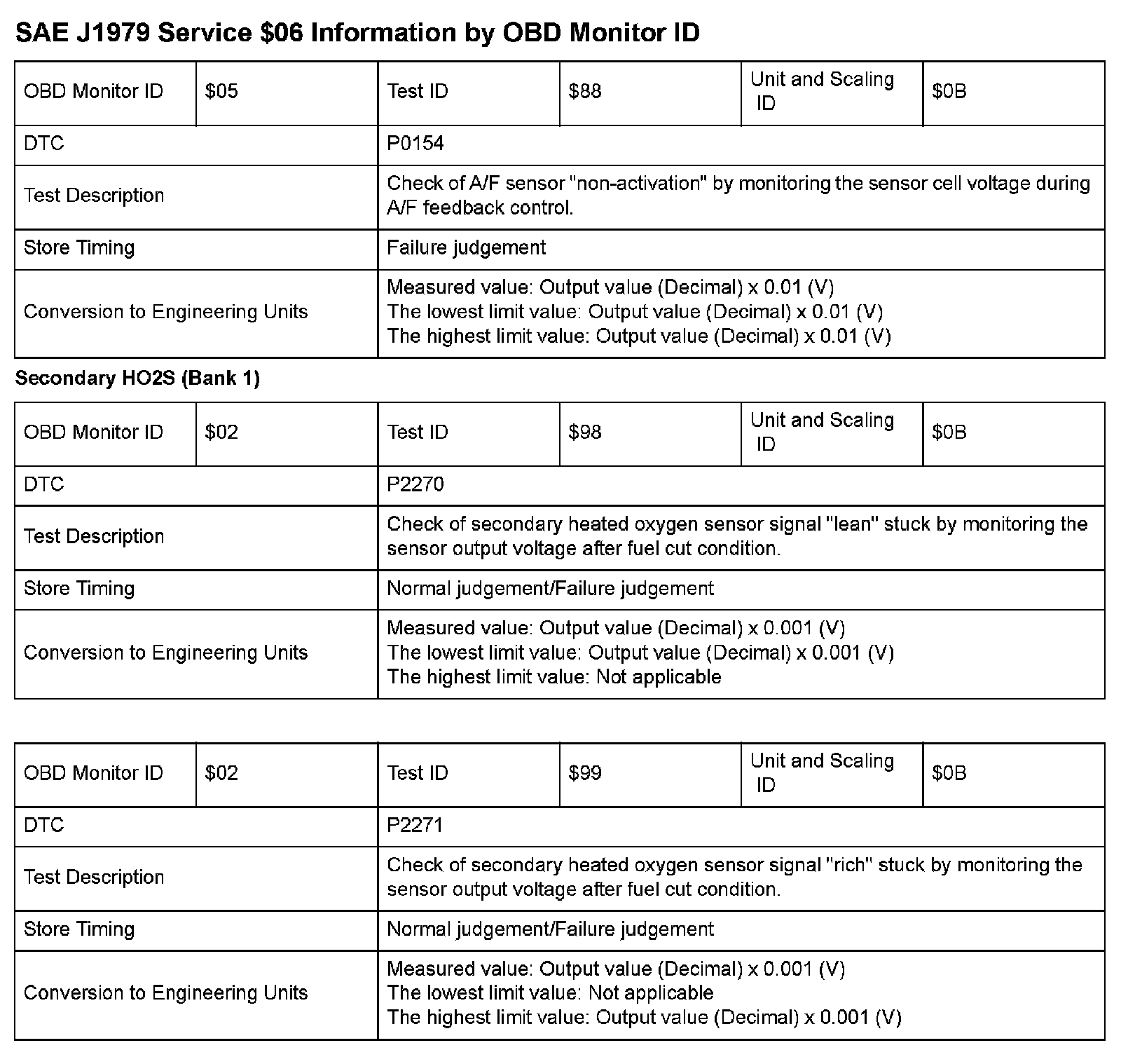 SAE J1979 Mode/Service $06 Test Information: All 2009 Hondas