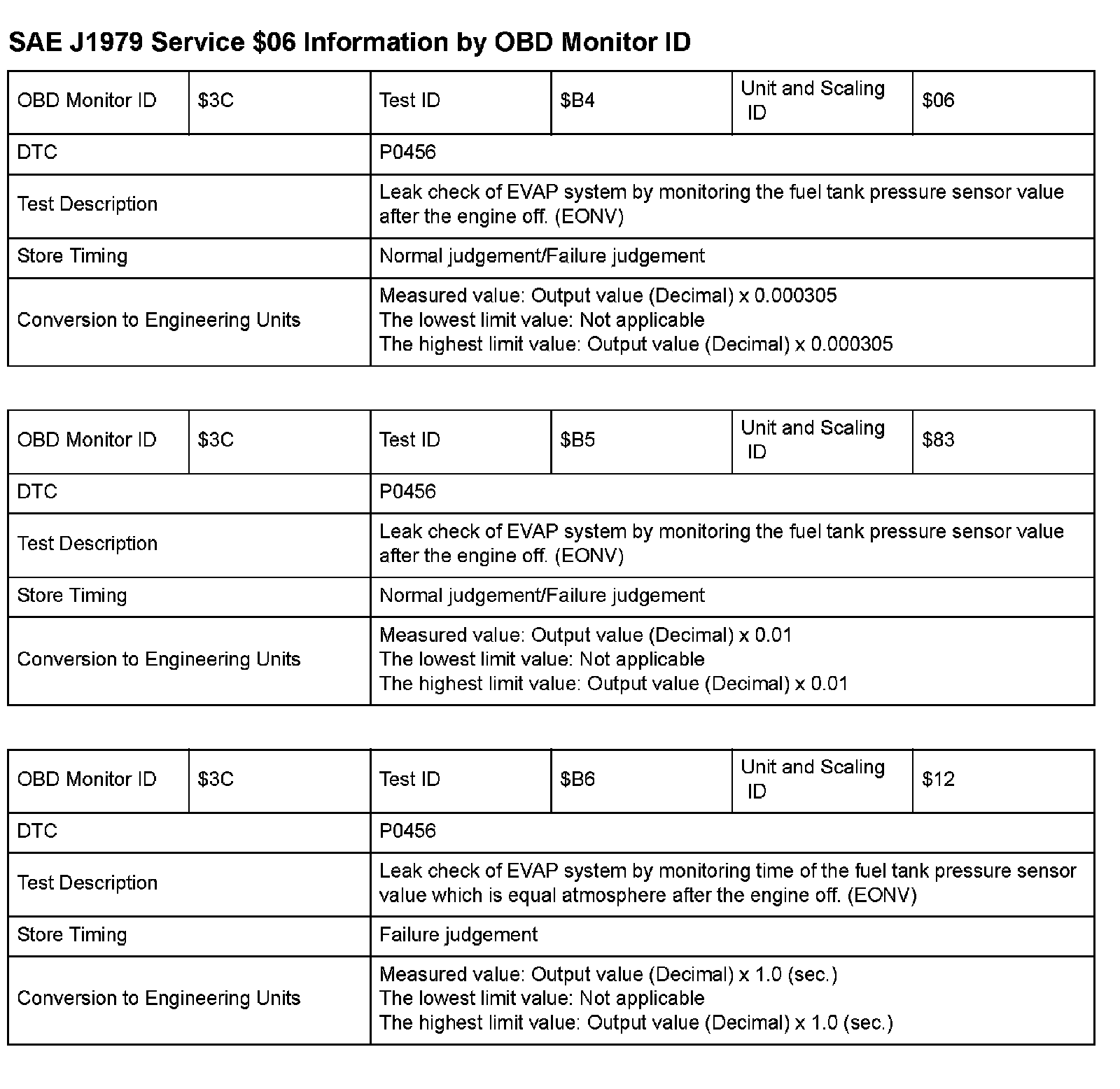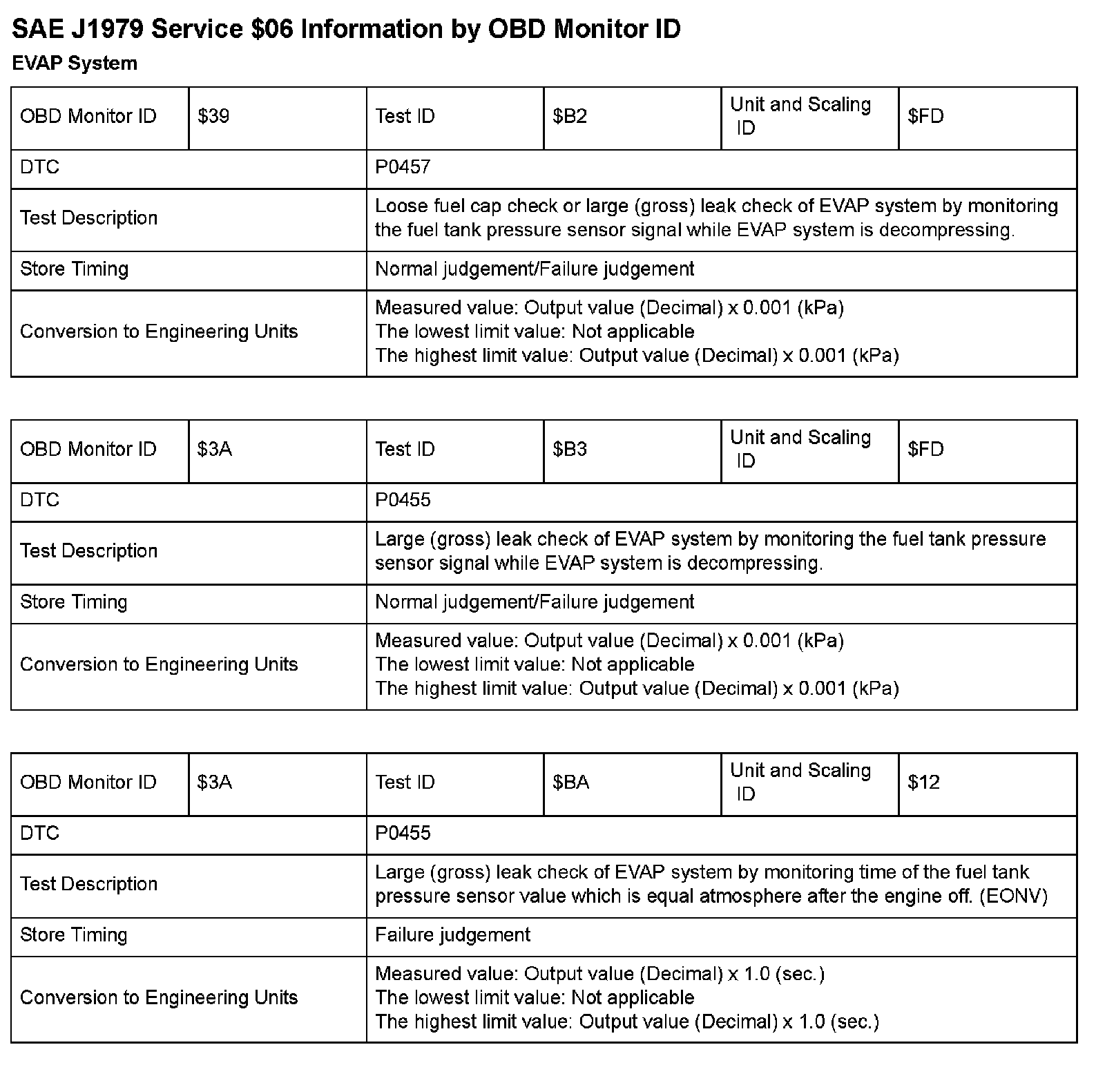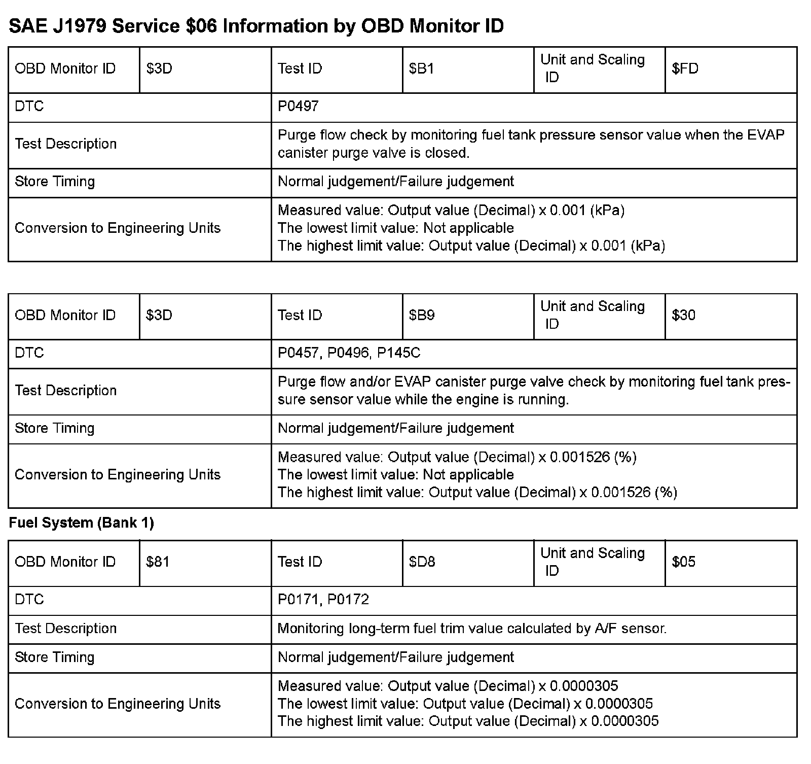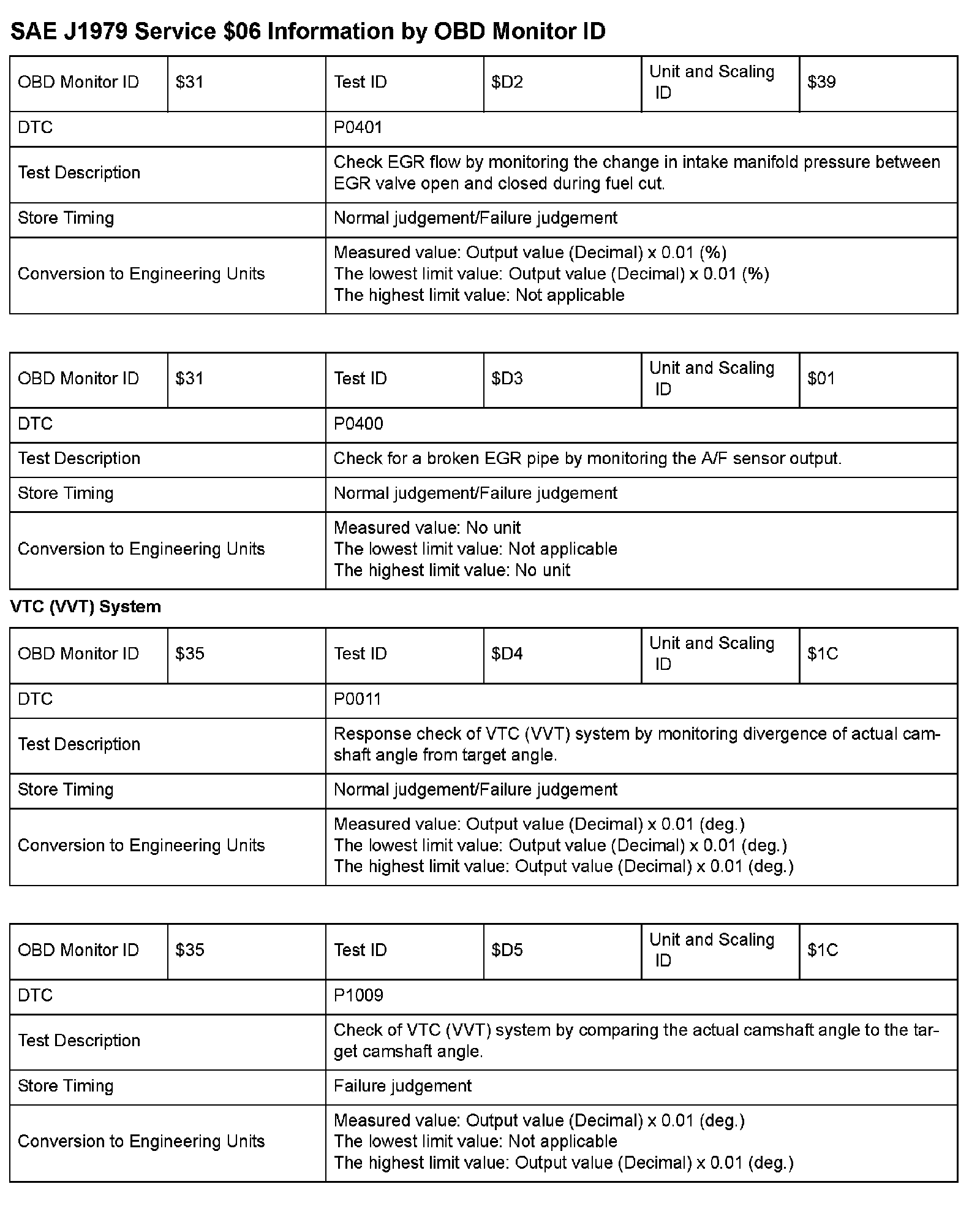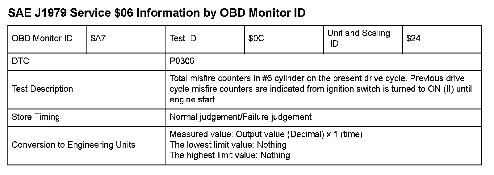 SAE J1979 Mode/Service $06 Test Information: All 2009 Hondas