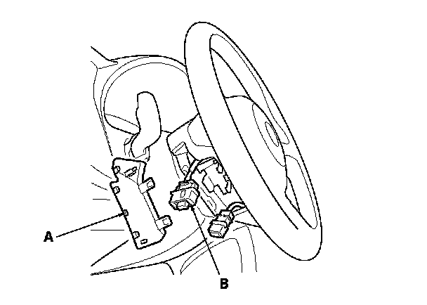 5. Remove the access panel (A), then disconnect the driver's airbag 4P connector (B) from the cable reel 4P connector.