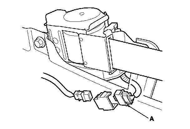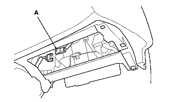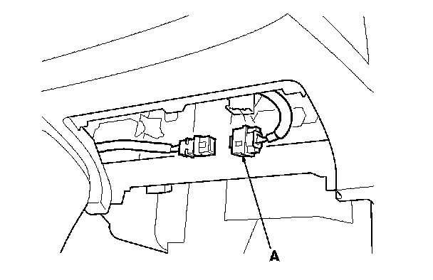 8. Remove the passenger's dashboard lower cover, then disconnect the passenger's airbag 4P connector (A) from the SRS main harness.