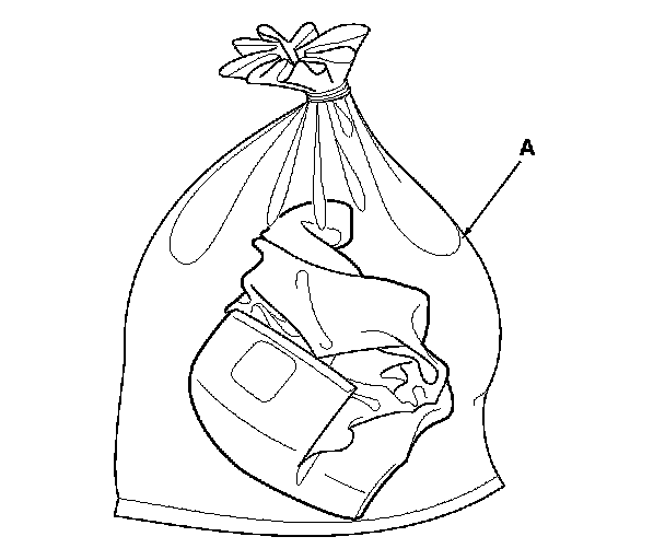 15. Dispose of the complete airbag. No part of it can be reused. Place it in a sturdy plastic bag (A) and seal it securely. Dispose of the deployed airbag according to your local regulations.