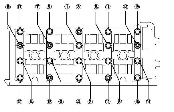 Tighten the bolts two turns at a time, in the sequence shown.