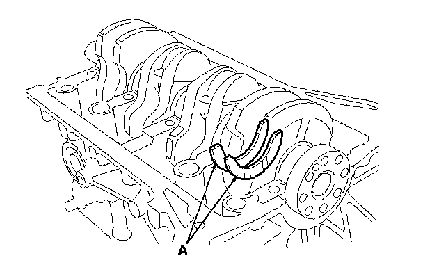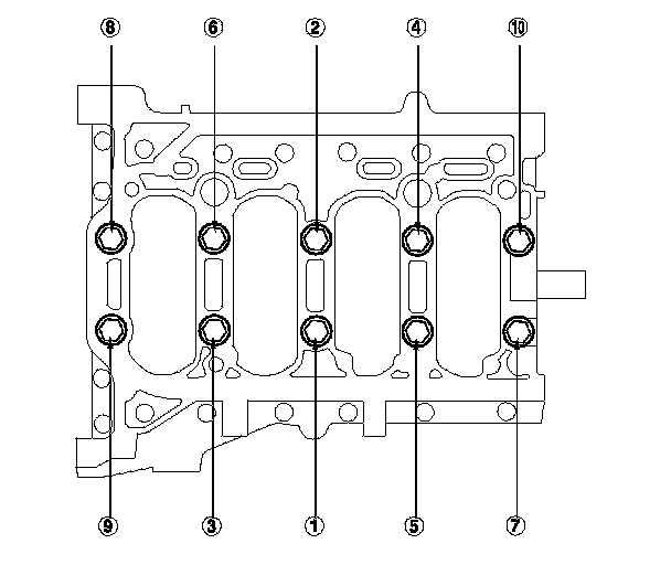 Tighten the bearing cap bolts is sequence to 29 N-m (3.0 kgf-m, 22 lbf-ft).