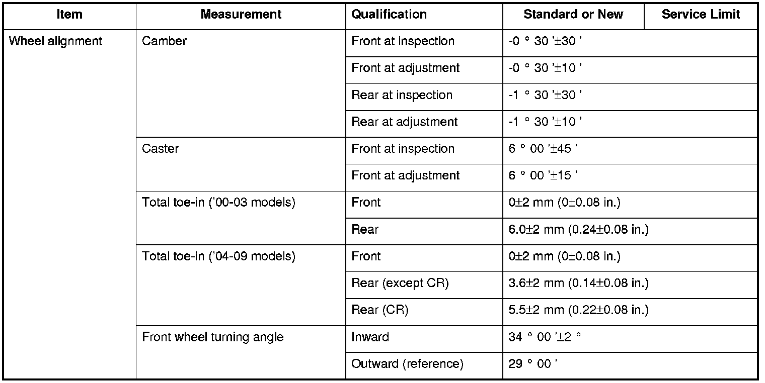 Wheel Alignment Specifications