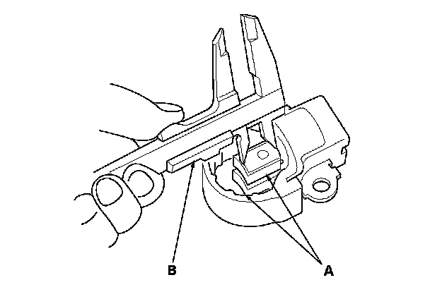 19. Measure the length of both brushes (A) with a vernier caliper (B).