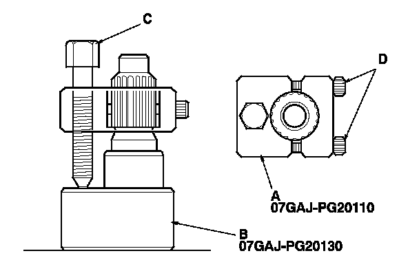 4. Attach the catch adapter (A) and the base adapter (B) to the mainshaft as follows: