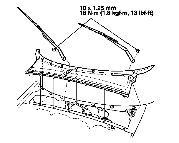 1. Open the hood, and remove the cap nuts and the wiper arms.