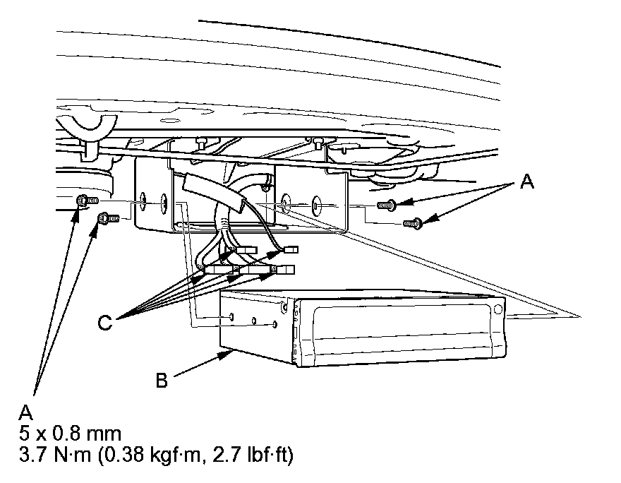 5. Disconnect the navigation unit connectors (C).