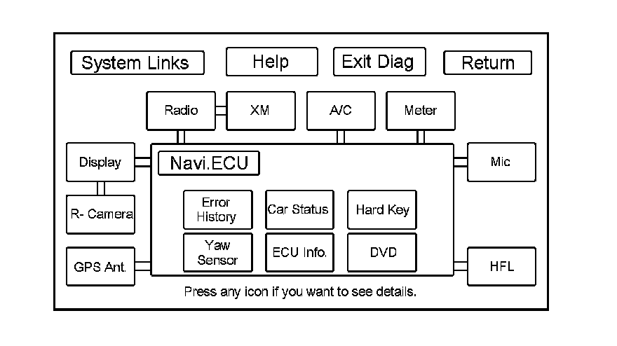 - Detail Information & Setting (allows you to manually diagnose the navigation system)