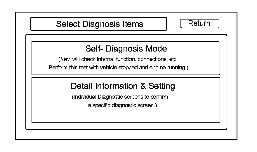 - Self-Diagnosis Mode (runs the automatic diagnosis of the navigation system)