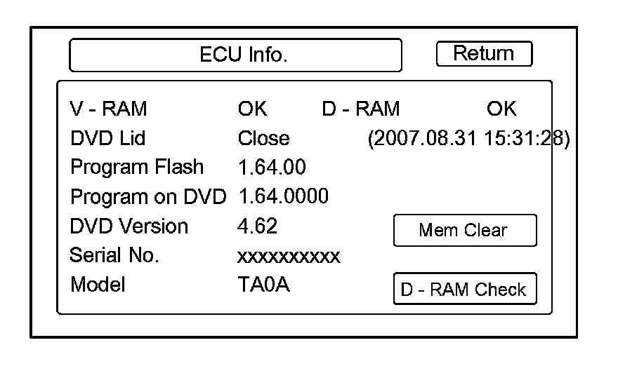 - Program on DVD: If displayed, this value represents the version of the navigation software on the navigation DVD.